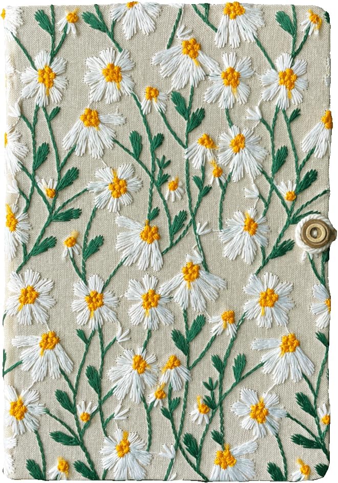 - Embroidery Fabric Notebook: this pretty journal features a beige cloth adorned with daisy flower, adding a touch of nature and elegance to your femininity.