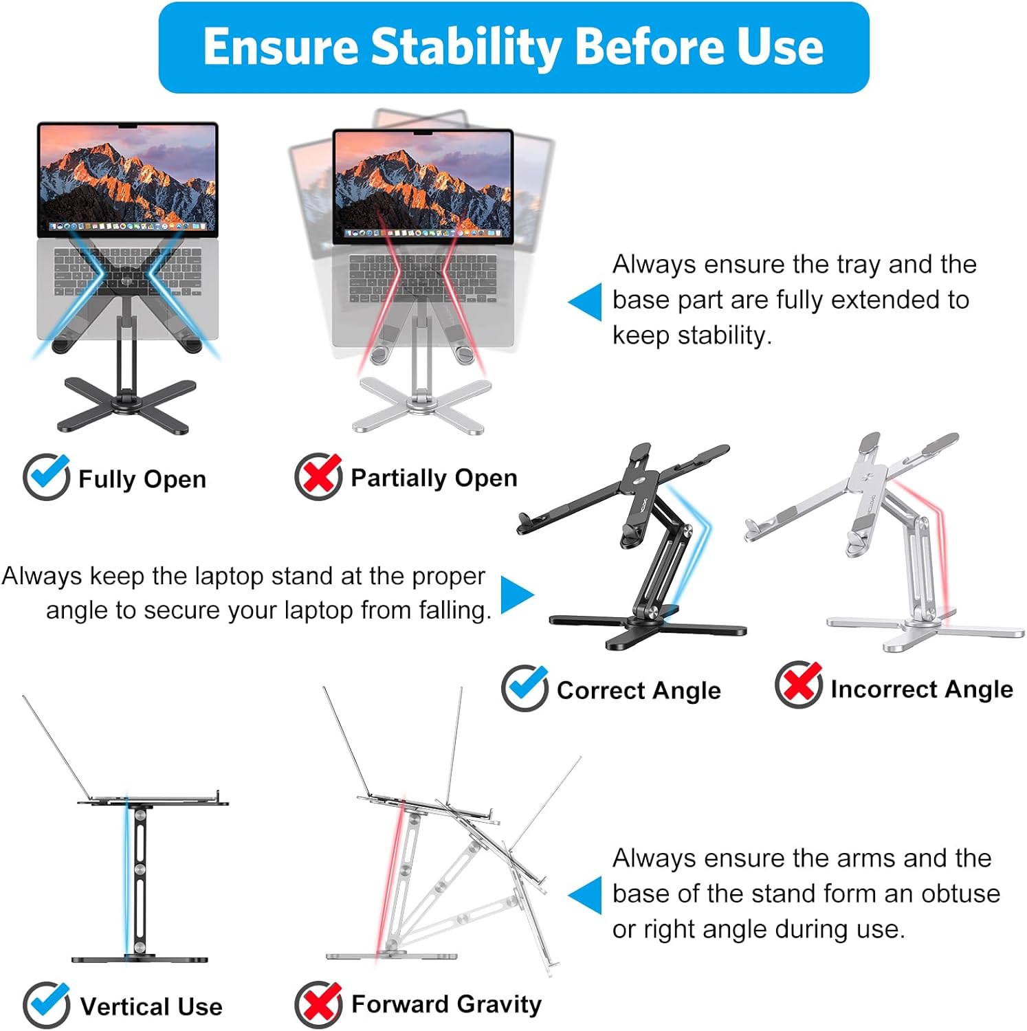 - 【Broad Compatibility】: The laptop stand for desk is well compatible with all laptops from 11 to 16-inch, such as MacBook 12 inch/ 13 inch, MacBook Air 13 inch, MacBook Pro 13 inch / 15inch/ 16 inch (2021/ 2020/ 2019/ 2018/ 2017/ 2016), Microsoft Surface, Dell, HP, Chromebook, and other devices