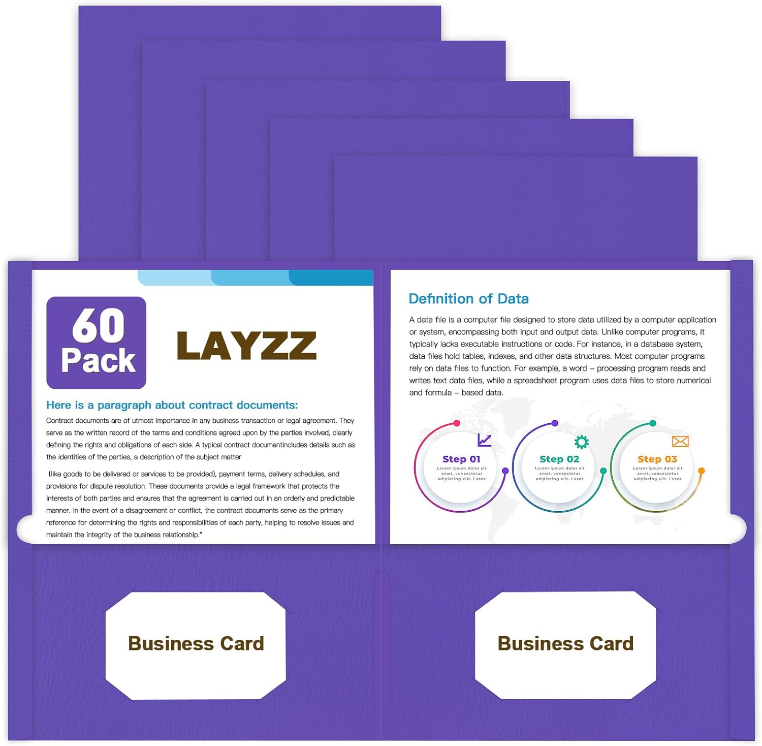 Folders with Pockets, LAYZZ 60 Pack Paper Pocket Folders, 2 Pocket File folders Fits Letter Size Paper, for School Office and Home (Purple)
