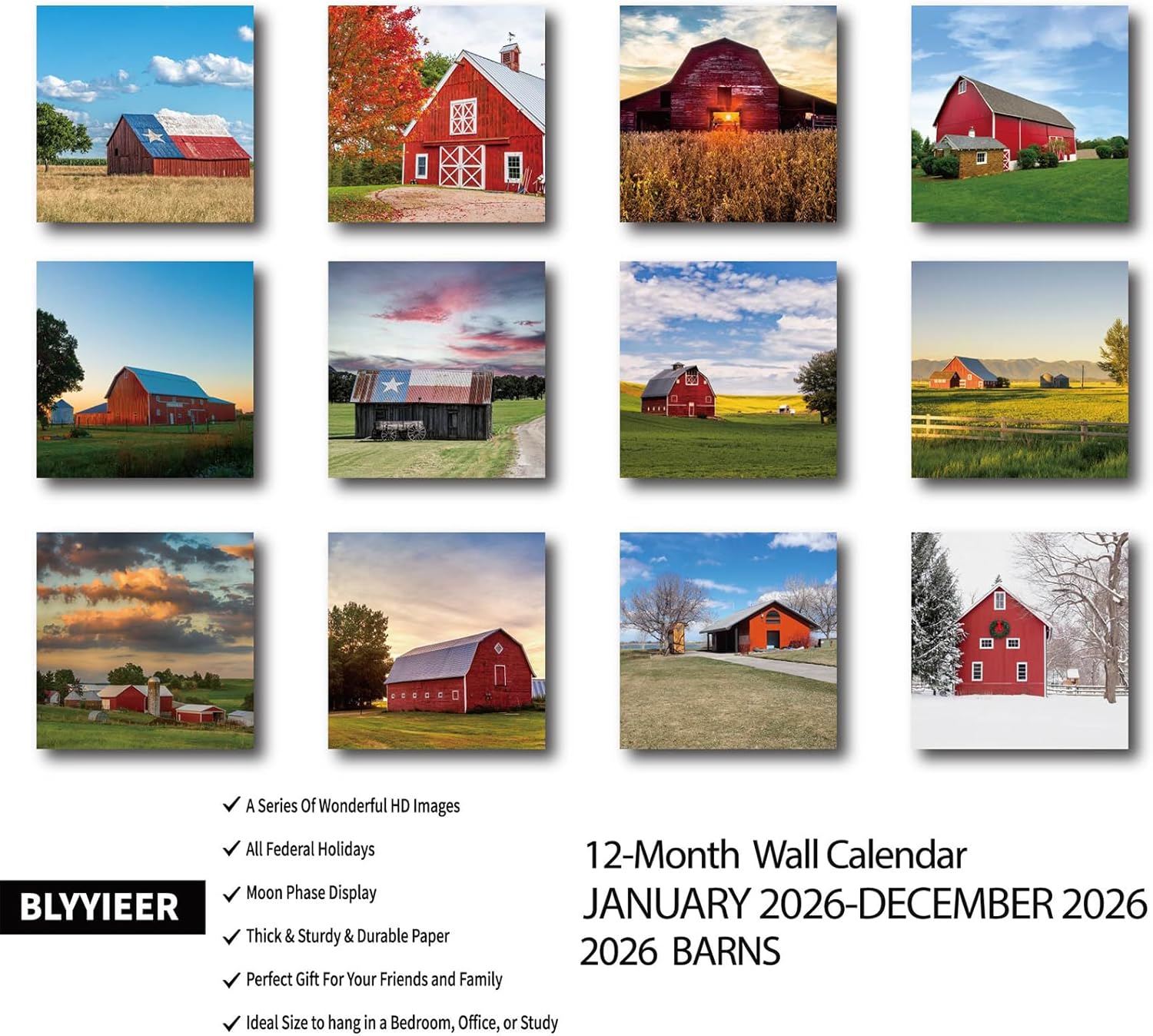 - 【Set a Peaceful Mood】➤The Barns 2026 Wall Calendar features relaxing photos of Barns. It’s perfect for you to relax, breath, and eliminate the feeling of tension and anxiety in yoga studios, massage therapy centers, meditation rooms and other serene spaces. You'll love this wall calendar! Motivating yet interesting.
