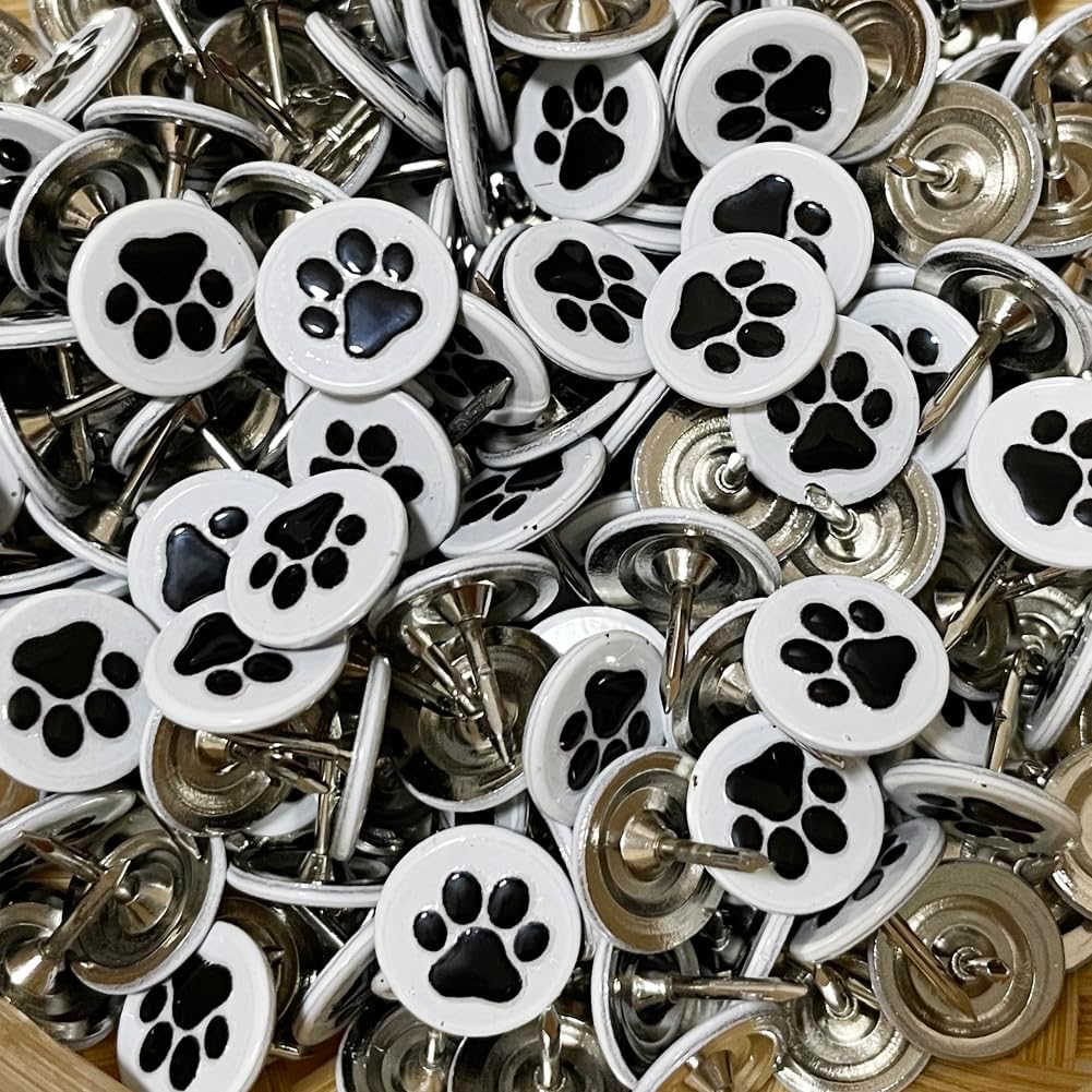 Let's Decorate 100PCS D11mm/0.43" Upholstery Tacks with Paw Paint, Decorative Tacks for Wooden Boxes, Furniture Metal Thumb Tacks, Cute DIY Decorative Nail Heads Nails (Flat Head,White)