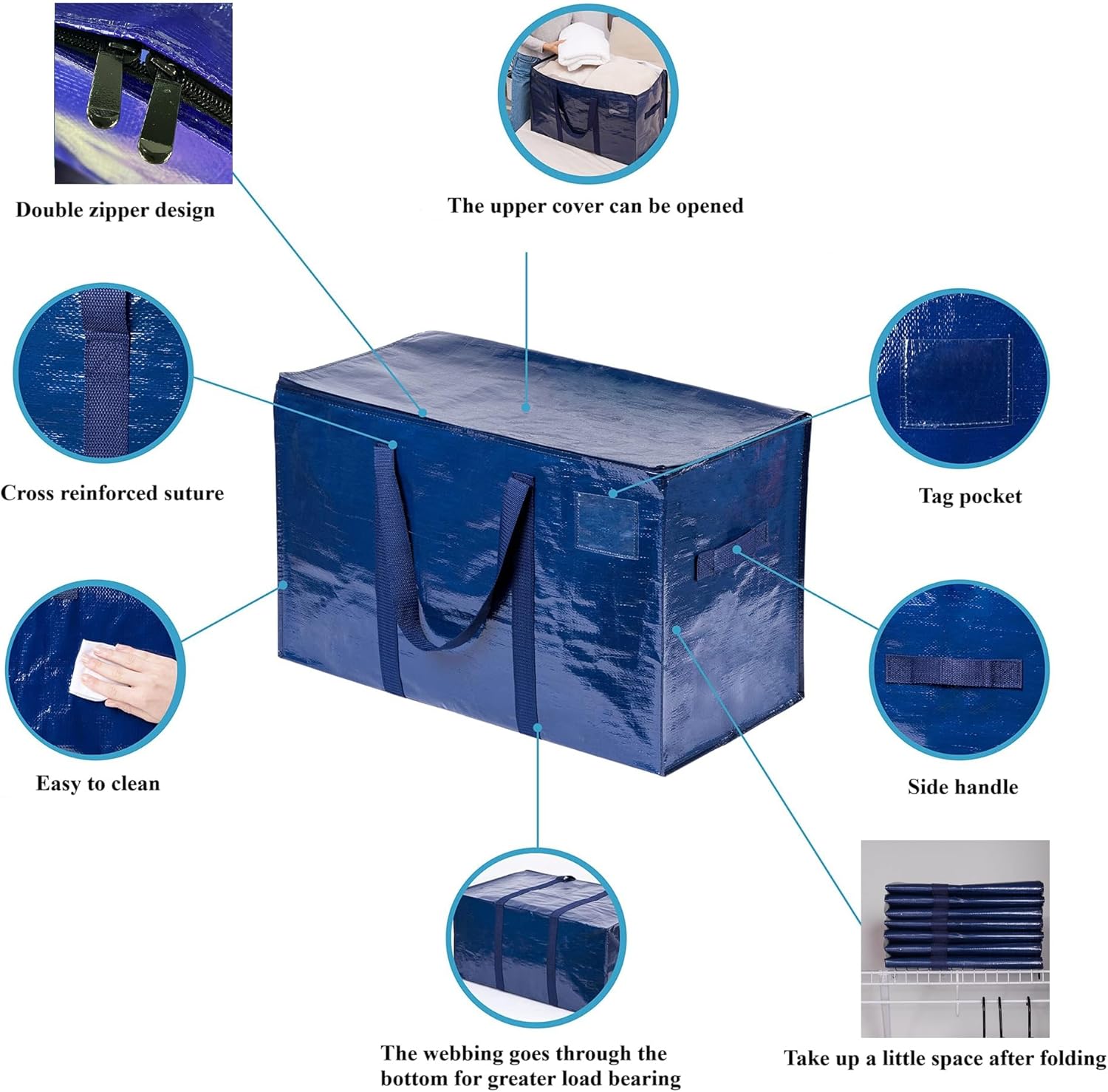 - 【Extra Heavy Duty】Made of upgraded 180 GMS extra thick coated PP fabric, moving bags with fully wrap around handles, The handle part is double-sewn,strong zipper and reinforced stitching promise to safely hold 100 lbs loading