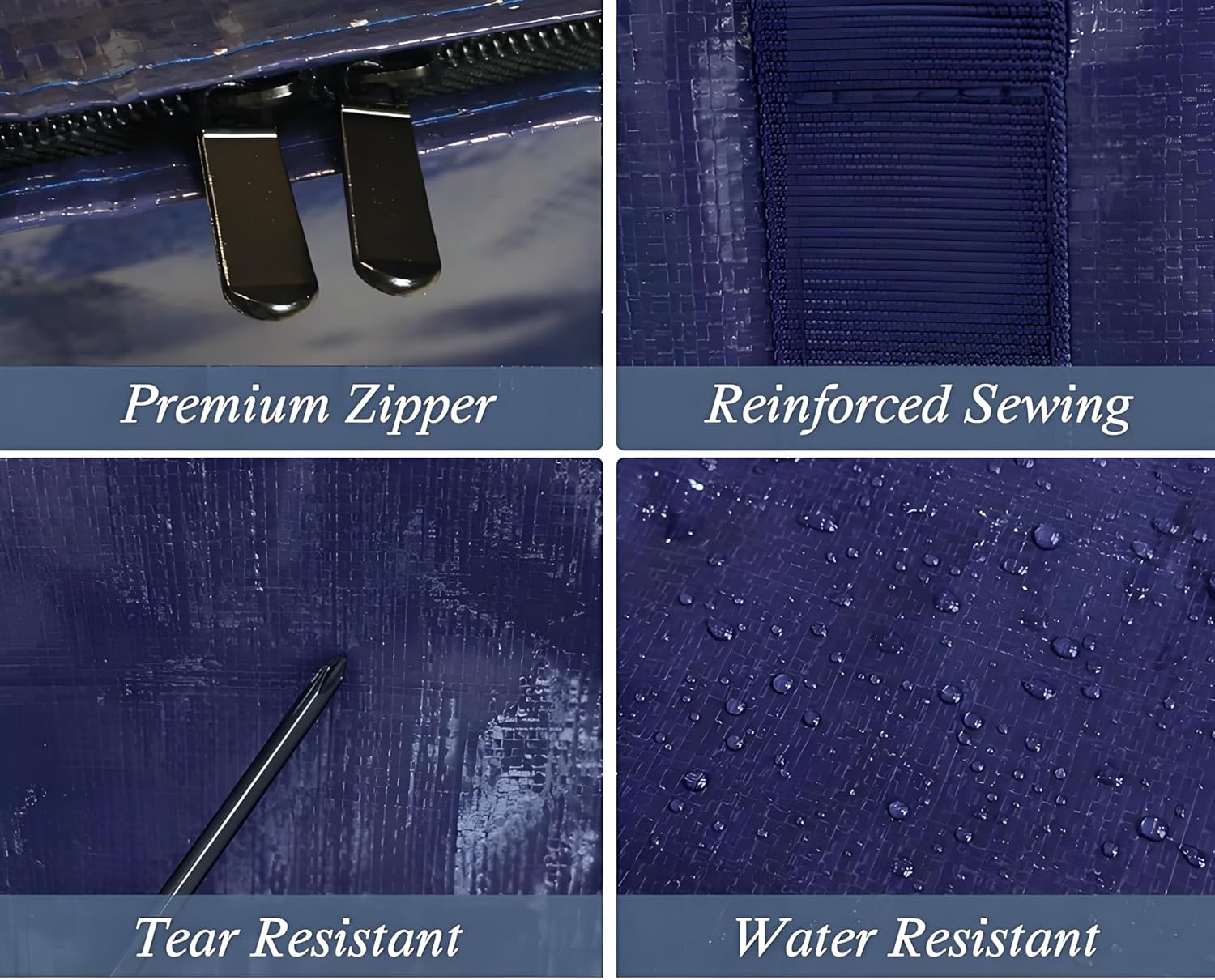 Extra Heavy Duty Large Moving Bags with Strong Zipper & Comfortable Handles, Sturdy & Durable Clothes Storage Bags Totes Bins, Dark Blue Packing Moving Boxes (1-pack)