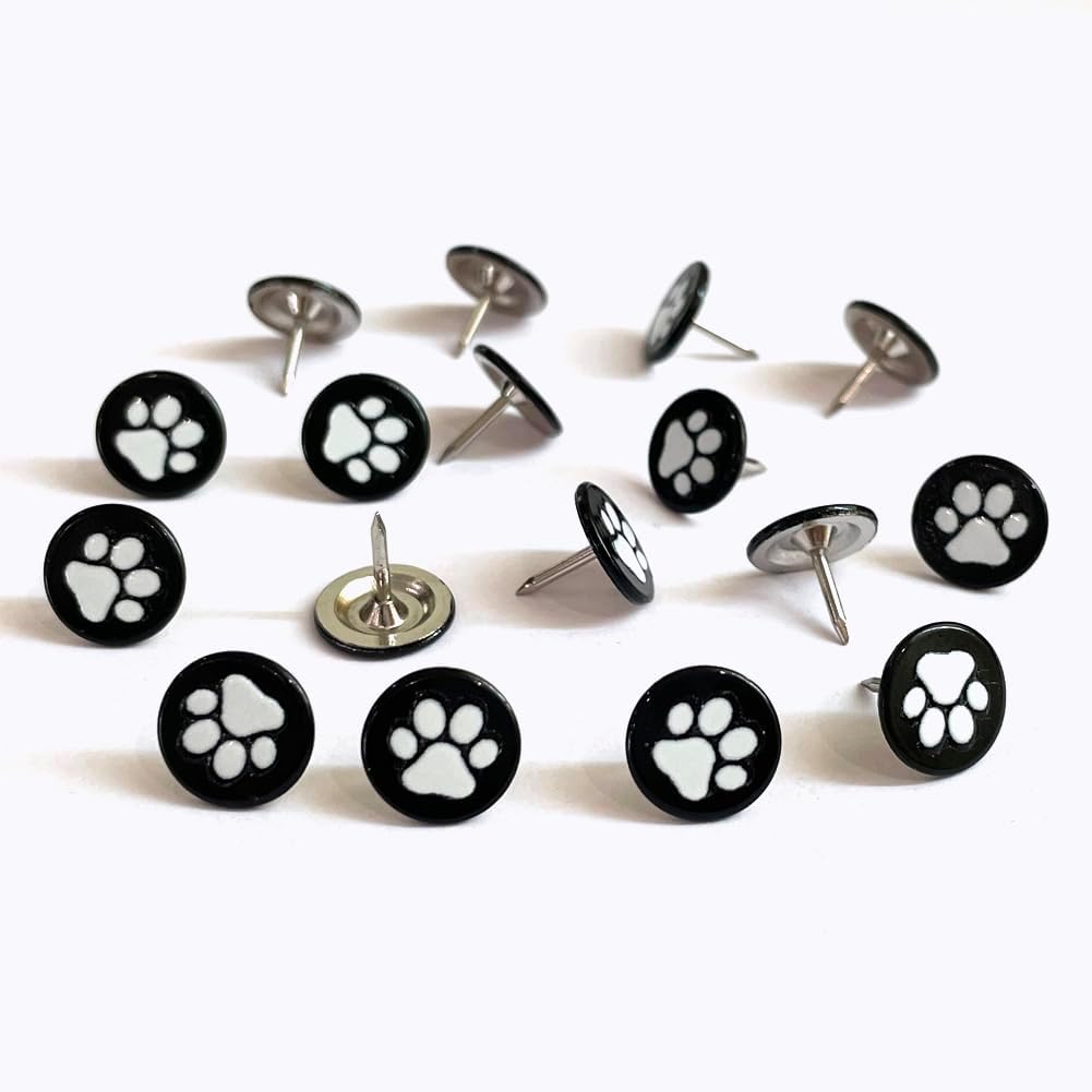 Let's Decorate 100PCS D11mm/0.43" Upholstery Tacks with Paw Paint, Decorative Tacks for Wooden Boxes, Furniture Metal Thumb Tacks, Cute DIY Decorative Nail Heads Nails (Flat Head,Black)