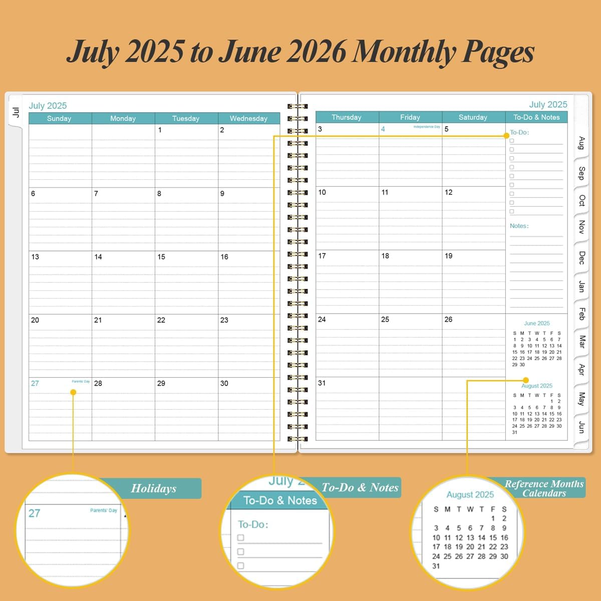 - Planner 2025-2026 - Weekly & Monthly from July 2025 to June 2026, 12 months spiral planner great for an easy year-round planning and organizing. The size is 8.5" x 11", suitable for your backpack or work bag