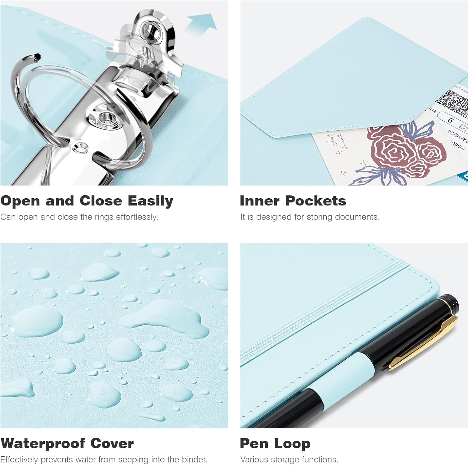 - 【Premium Design】The easy-to-grip clip securely holds 80–100 sheets, while elastic closure straps protect contents during transit. An elastic pen loop secures your writing tools, and a detachable spine label delivers quick binder access.