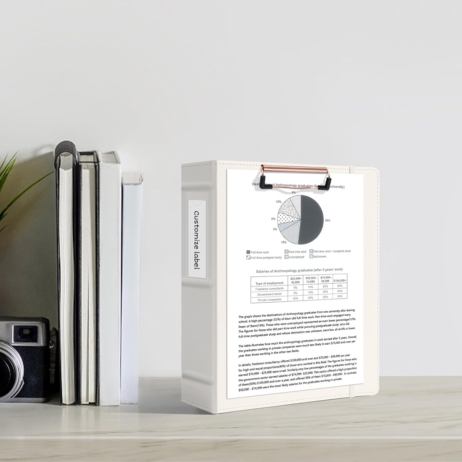 - 【Premium Design】The easy-to-grip clip securely holds 80–100 sheets, while elastic closure straps protect contents during transit. An elastic pen loop secures your writing tools, and a detachable spine label delivers quick binder access.