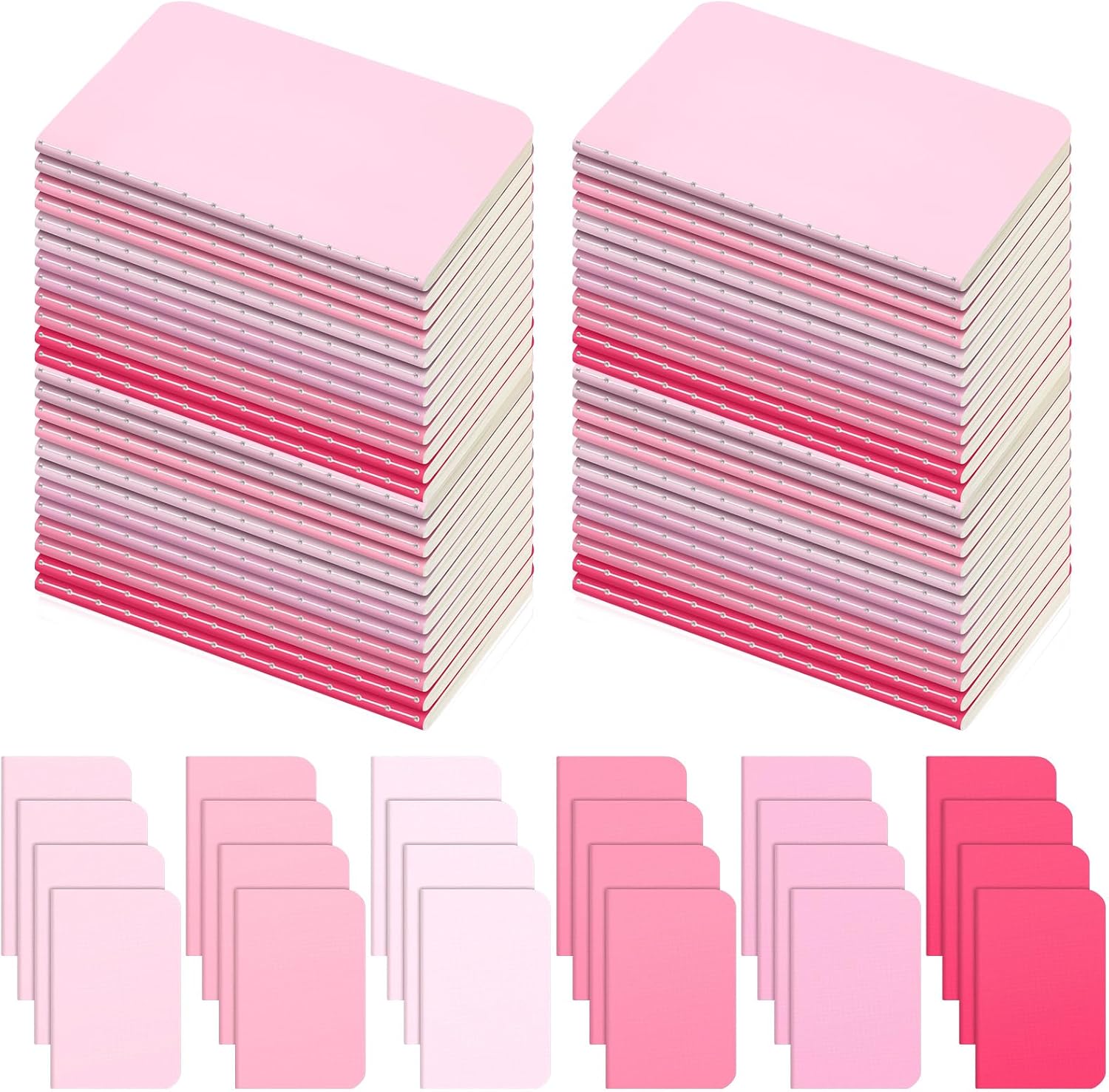 Outus 36 Pcs Pocket Notebook Mini Journal 2.5" x 4" Kraft Paper Mini Notepad Bulk Softcover Pocket Notepad Memo Diary Subject Notebooks for Student Traveler School(Pink, Blank Cover)