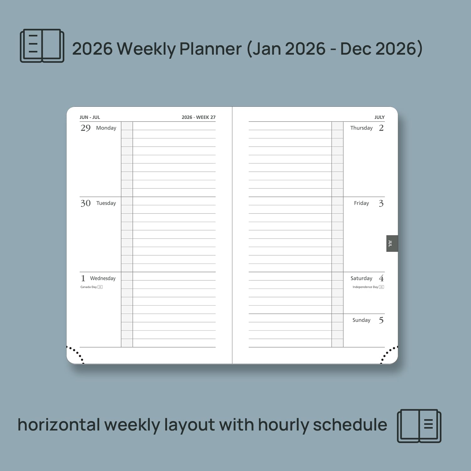 • [CLEAR WEEKLY & MONTHLY PLANNING] This 12-month planner provides complete coverage from January to December 2026, helping you plan each week in detail with its two-page horizontal layout featuring lined sections for daily tasks and notes. Each month begins with a calendar overview to schedule important dates, while the 2026-2027 yearly overview at the front helps you track long-term goals and deadlines.