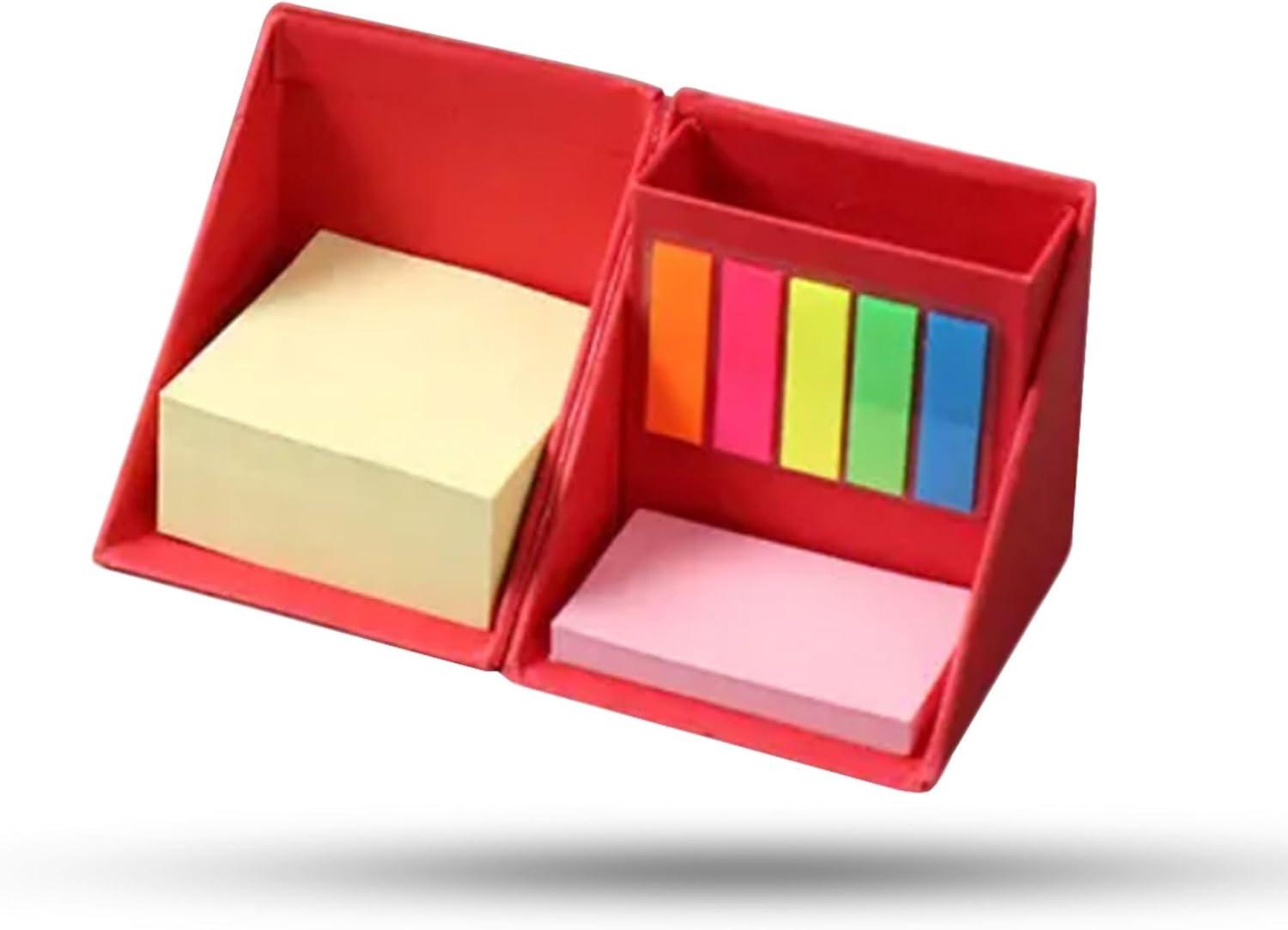 Sticky Notes Organizer Cube with Pen Holder, 3-in-1 Multi-Size Memo Pad Set, Transparent & Colorful Post It Notes, Fun Sticky Pads, Portable Fun Teacher Supplies, for Home, School, Office Desk (Red)