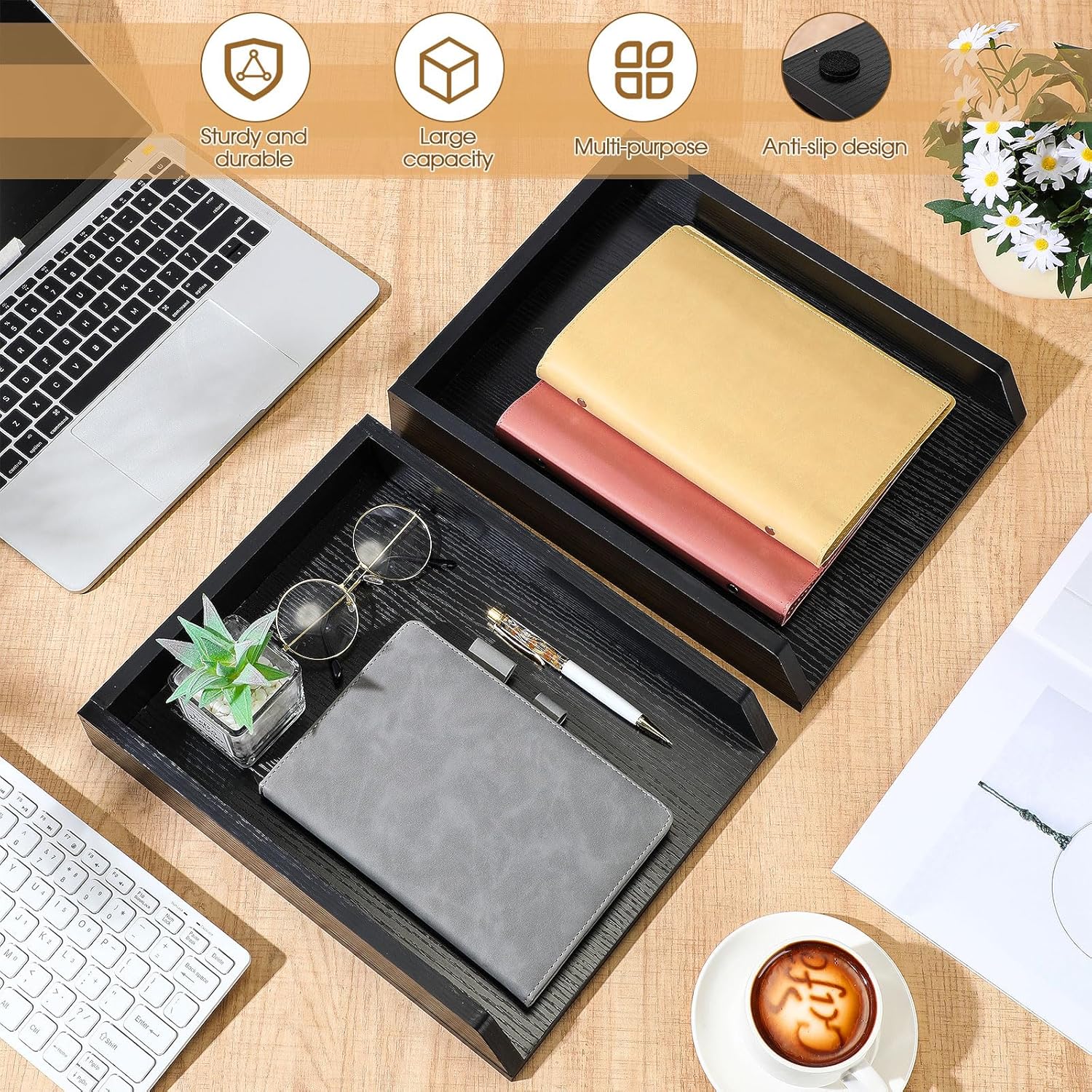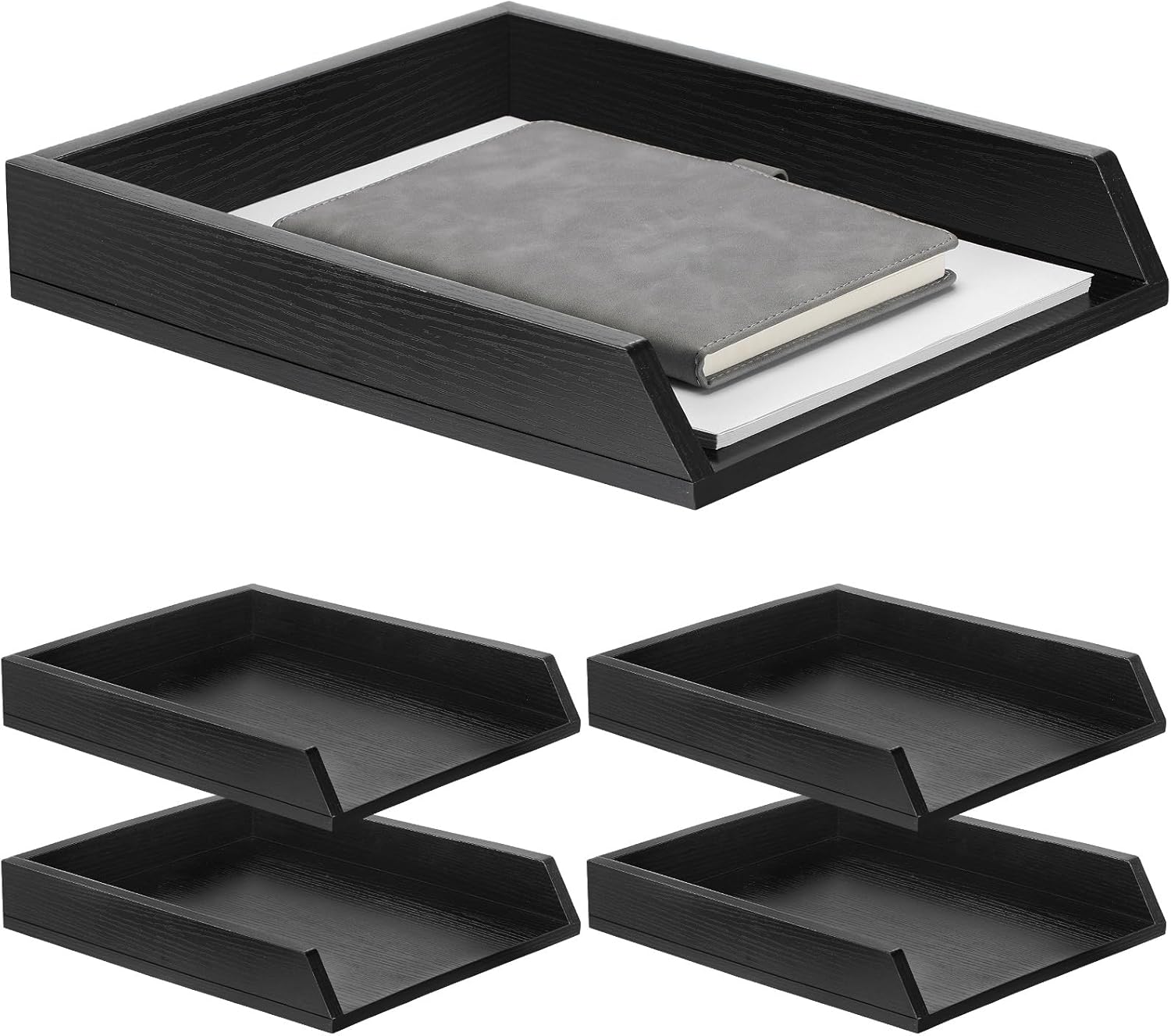 4 Pcs Wooden Letter Trays Wood Letter-Size Desk Organizer Heavy Duty 2 Tier Stackable Supports Paper Tray Desktop Drawer Organizer File Folder Magazine Office Accessories (Black)