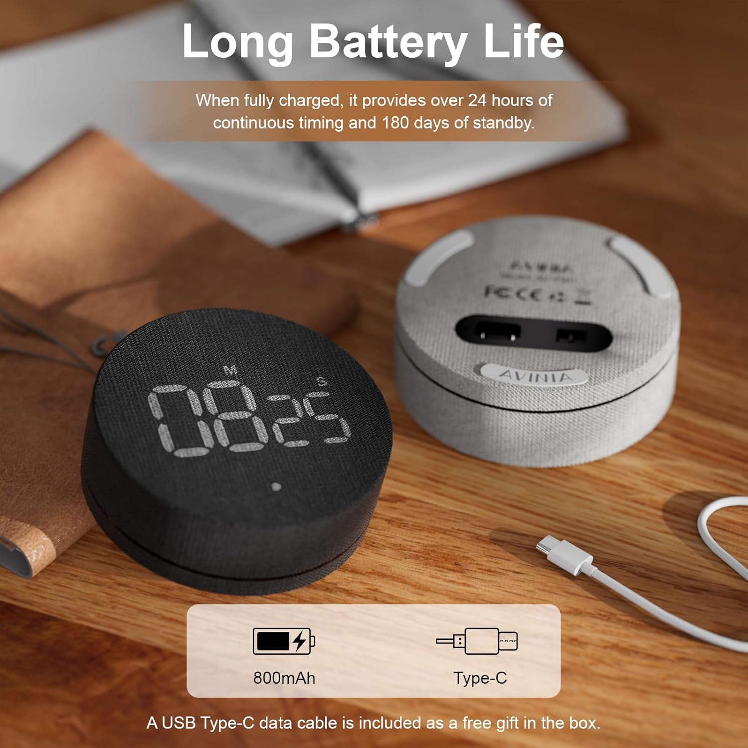 AVINIA Desk Timer for Productivity Magnetic Digital Kitchen Timer Rechargeable Fabric Mesh Cover 99 Mins Countdown/Count Up Stylish Efficana Konah Home Timmer for Cooking (Fabric Black)