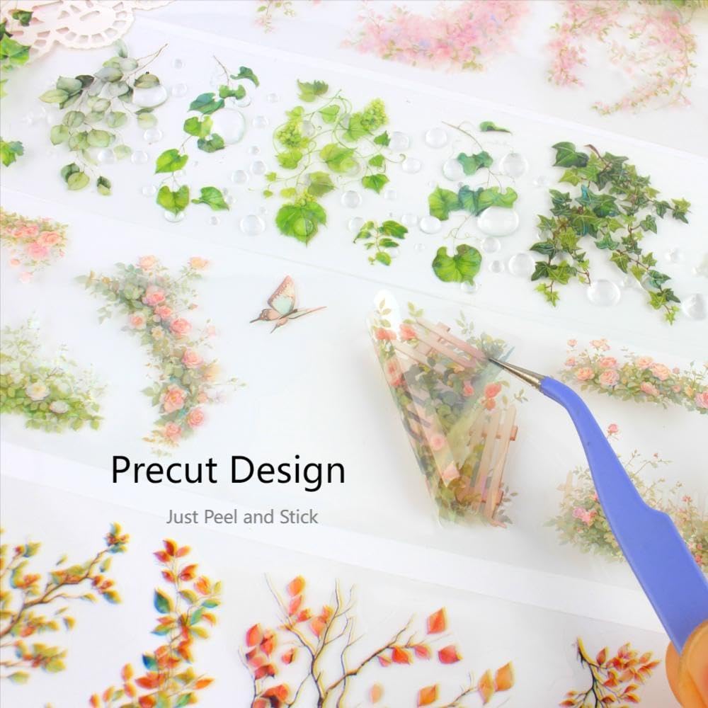 - VERSATILE DESIGN: 6 unique rolls of vintage garden-themed transparent PET tape with whimsical garden scenes, delicate floralmotifs, vine, and vintage-style botanical patterns perfect for creative projects