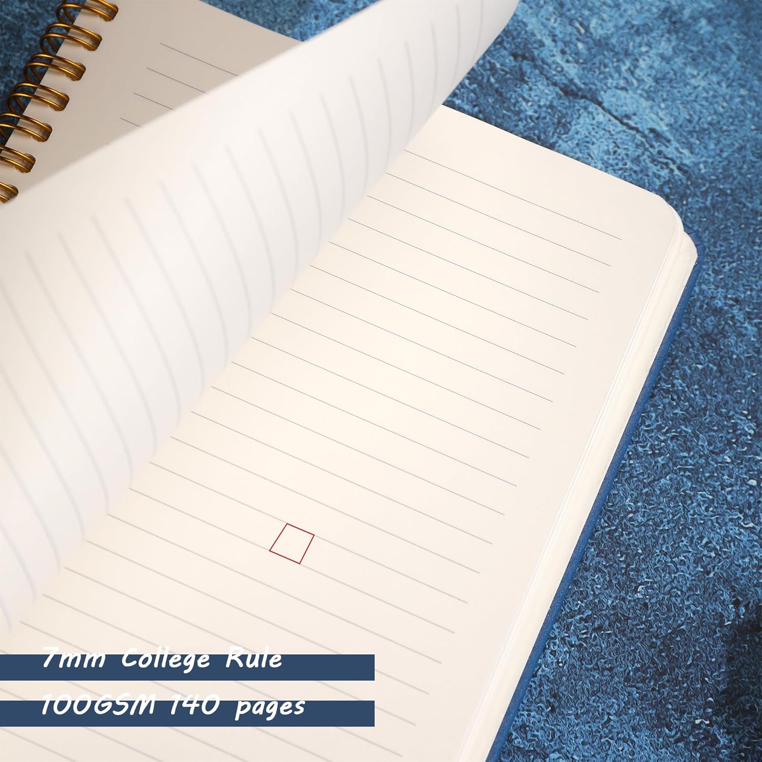 - 100gsm 140 College Rule Pages: This spiral journal uses 100gsm high quality thick paper with 7mm college rule inside, enjoy a smooth and satisfying writing experience. The high-quality cream coloured paper is impervious to ink, making it ideal for all types of neutral pens. This paper ensures that your notes remain legible, so you can be sure that your writing will stand the test of time.