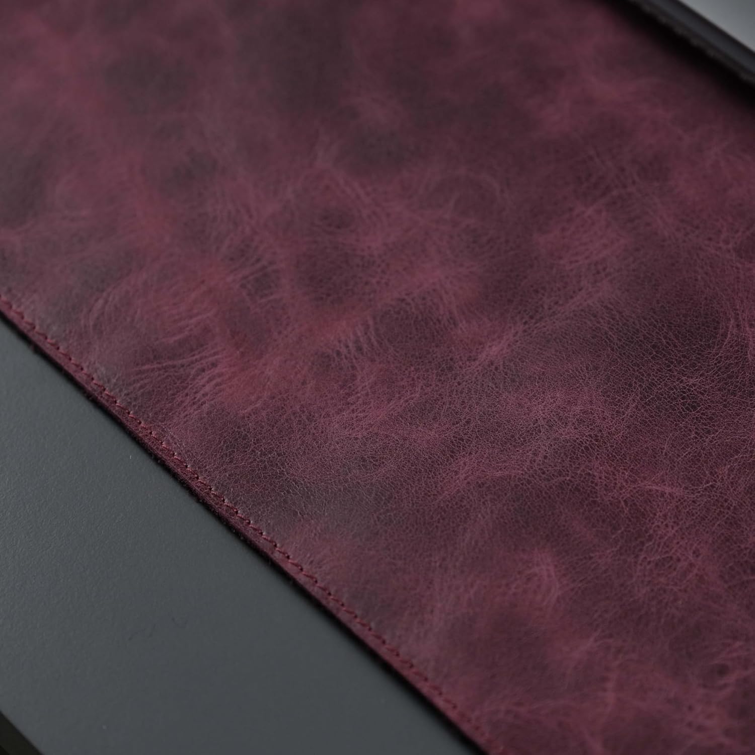 Jersey Genuine Calfskin Leather Desk Pad, Office Desk Mat with Non-Slip Bottom, Smooth Surface for Mouse & Keyboard, Desk Protector (36x19 inches) (Dark Purple)