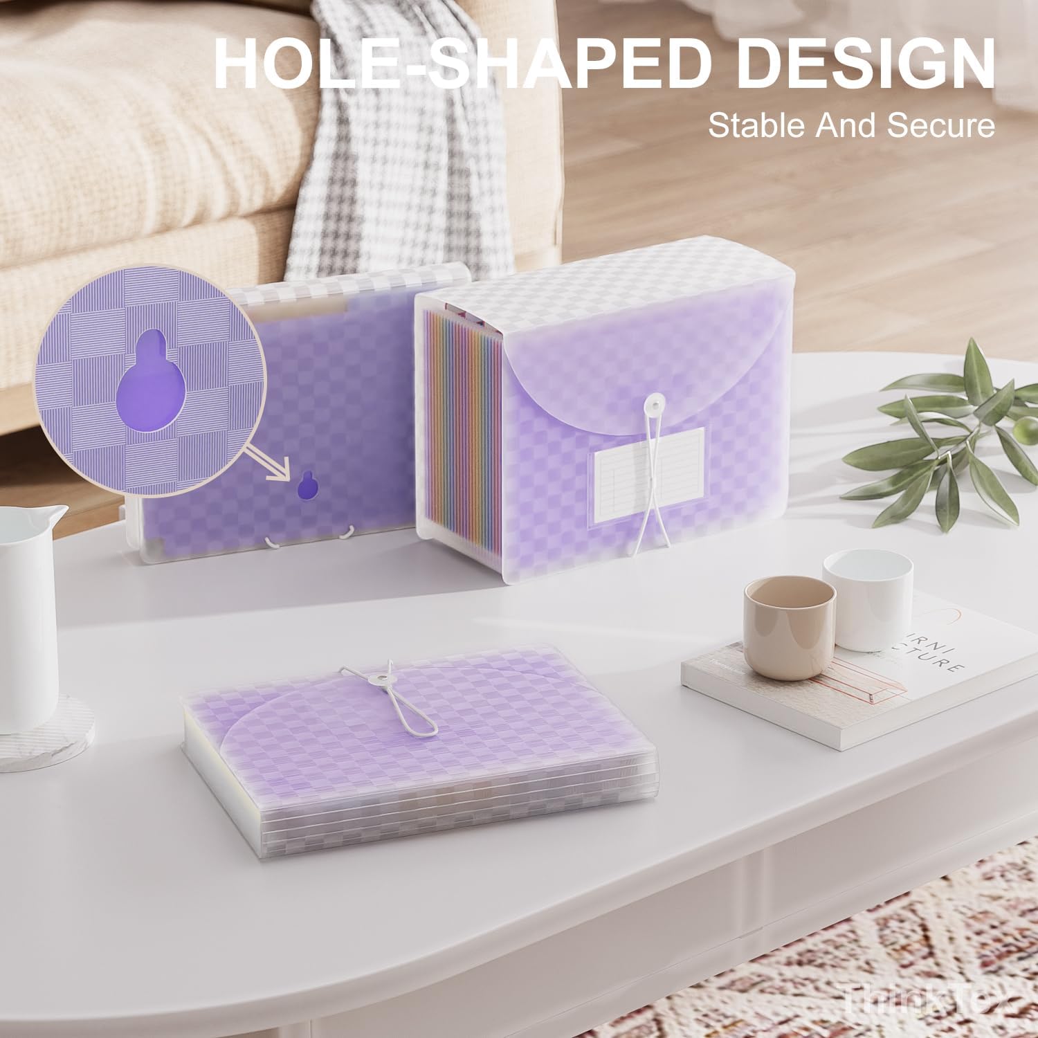 ThinkTex 26 Pockets Expanding File Folders, Accordion File Organizer with Expandable Cover, Monthly Bill Receipt Documents Organizer, A-Z Colorful Tabs, Letter/A4 Size - Purple