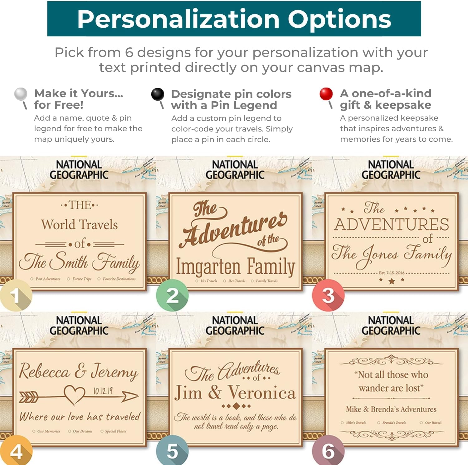 • Make It Your Own – Personalize your travel map with pins with your favorite travel quote or family names for a unique keepsake. A great conversation starter for your home or office, and a perfect custom gift for weddings, retirements, or graduations!