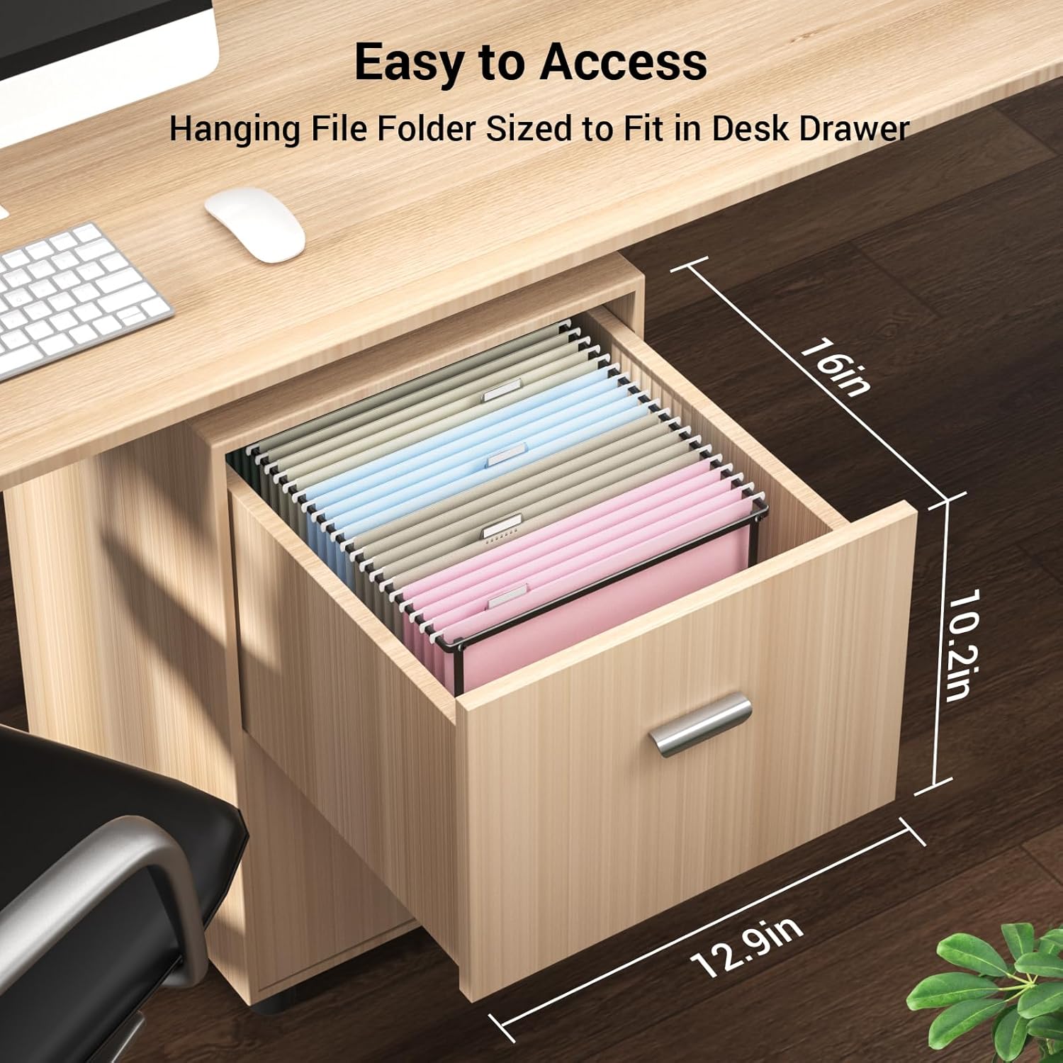 - 【What You Will Get】: Comes with 25 pcs hanging file folders and one metal file frame, They will not only keeps your contracts, tax files, and important papers securely organized with ease, But also designed to fit mostly filing cabinet, file drawer, cabinet and desktop, Whether in office, school or home, the vertical design of this hanging file organizer is your right-hand man for organizing documents and space saving