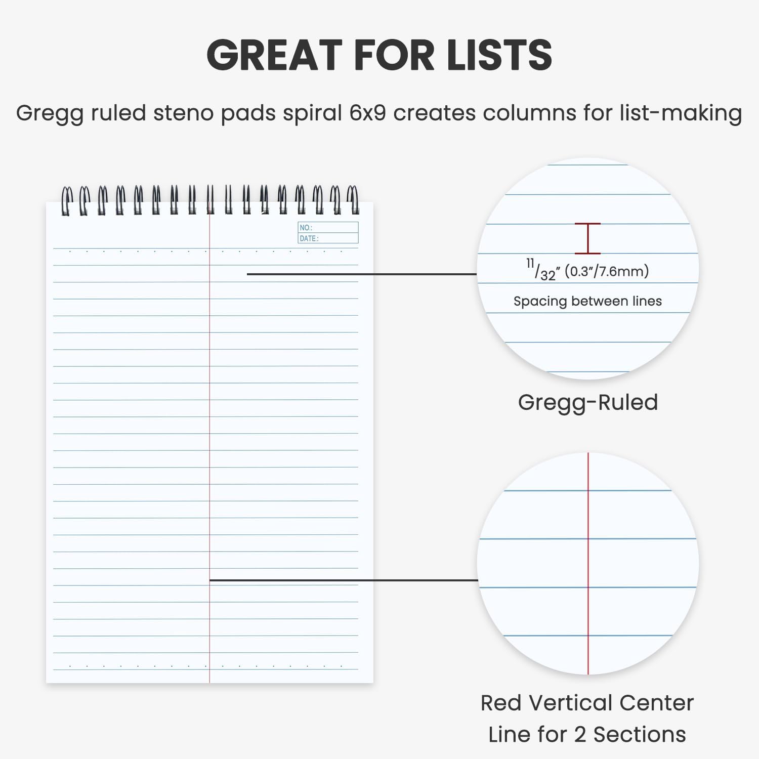 - Size Advantage with 6x9 steno pads: Perfectly sized, the 6" × 9" 6x9 steno pads blend the convenience of a 6x9 notebook with the versatile space of a 6x9 spiral notebook, strengthened by the secure layout of 6x9 notebooks spiral bound, and further enhanced by design elements from 6 x 9 notebook and 6 x 9 spiral notebook for all your note-taking tasks.