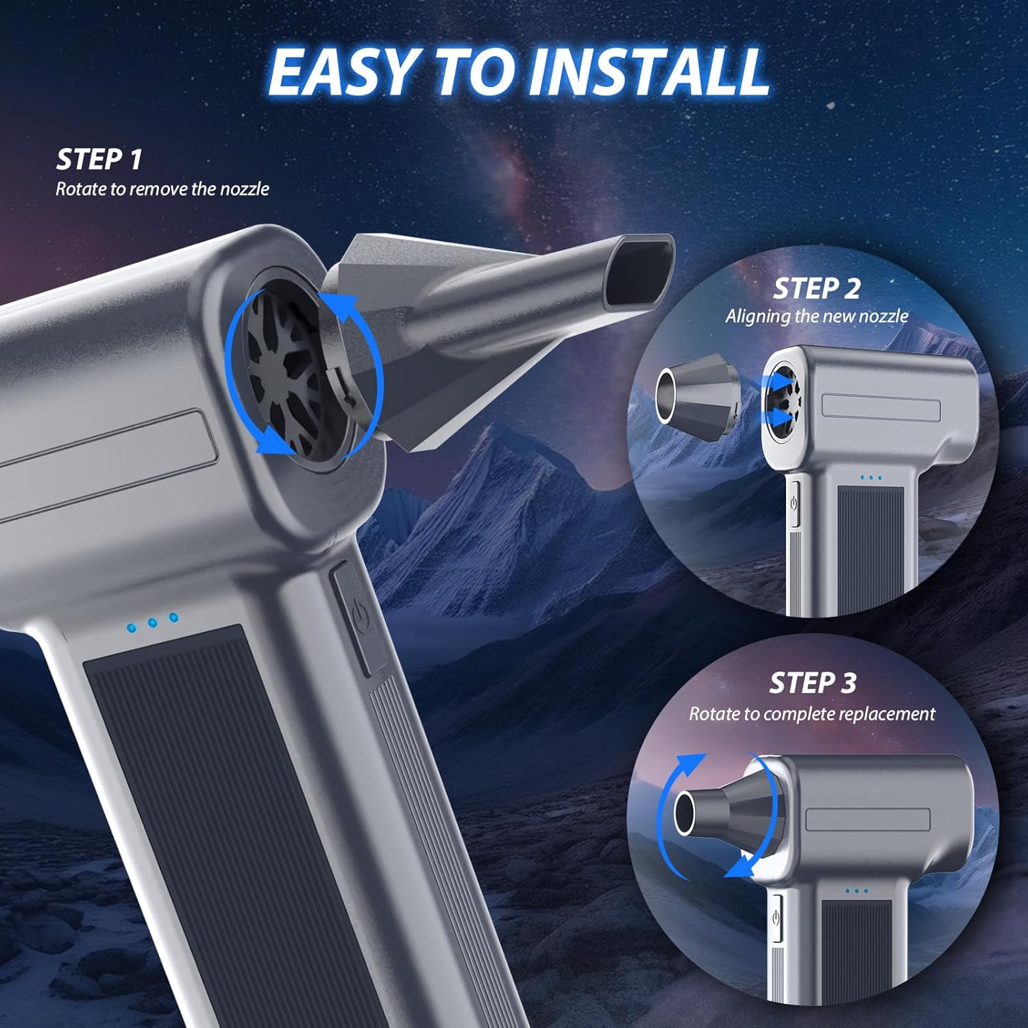 - Powerful Turbo Fan Performance: This compressed air features a brushless motor reaching 300,000 RPM with a max wind force of 200g, effortlessly blowing away dust and debris. As an eco-friendly electric air duster, it replaces disposable compressed air cans, making it ideal for heavy-duty cleaning tasks like blowing dust from pc/keyboard/toys/camera/ps5 ect, even removing snow from your car.