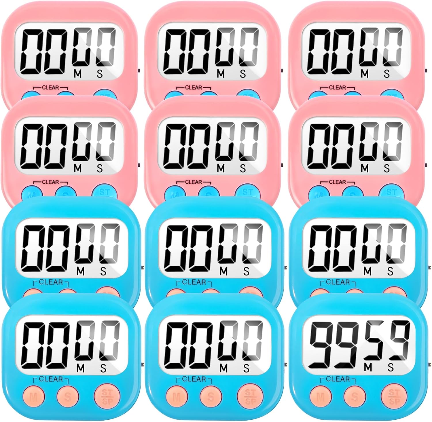 12 Pack Digital Kitchen Timer Small Classroom Timers for Kids Teachers (Blue&Pink)
