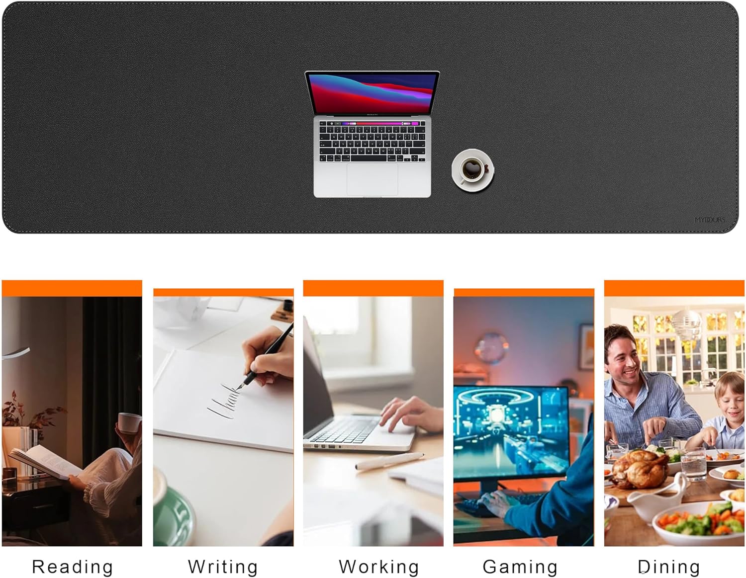 Mydours 75" x 24" Super Large Desk Pad, Desk Protector Mat with PU Leather, Large Desk Blotter Mat for Office, Home & Writing, Full Desk Pad for Keyboard and Mouse (Black)