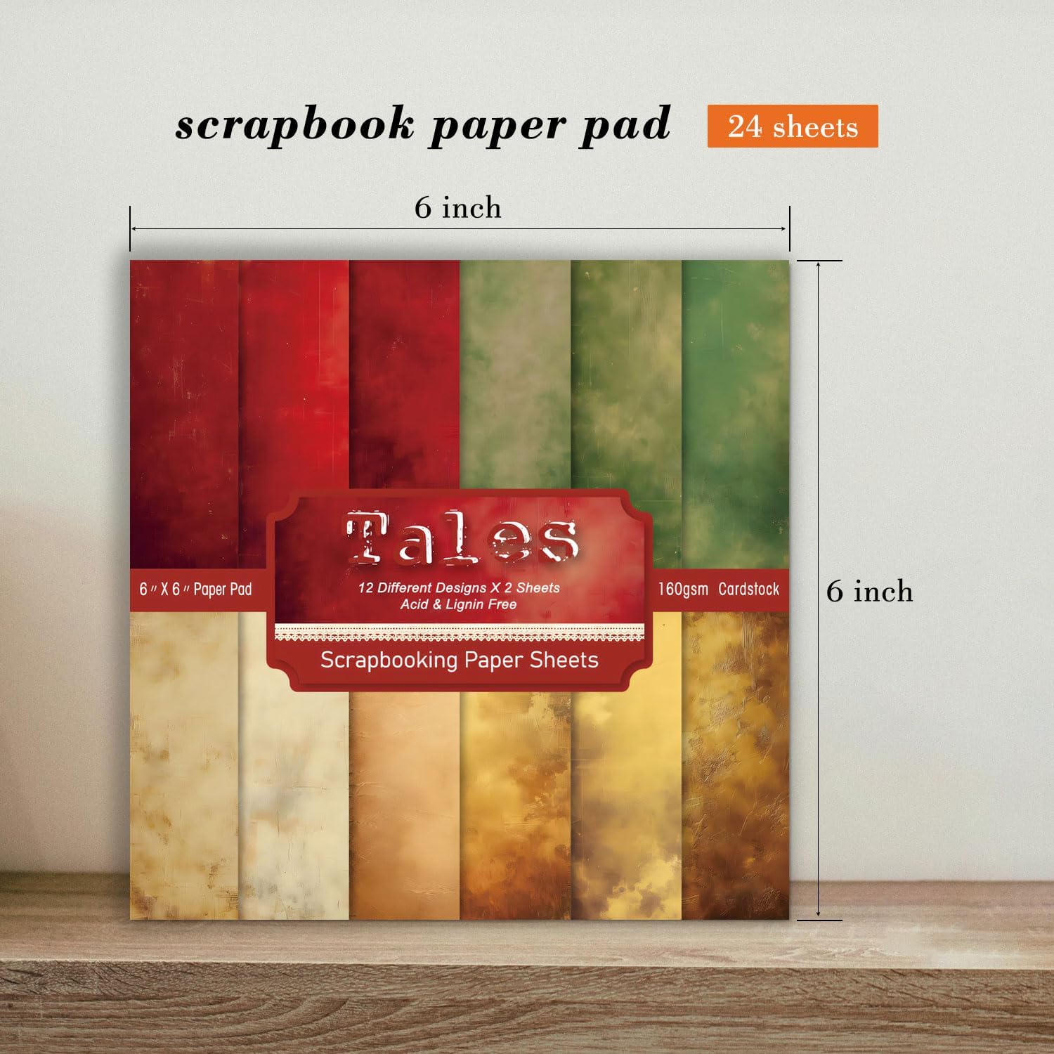 Vintage Color Scrapbook Paper Pad - 6x6 In 24 Sheets Designed Decorative Decoupage Folding Cardstock Supplies for Journals DIY Crafts Gift Wrapping Planners Photo Album