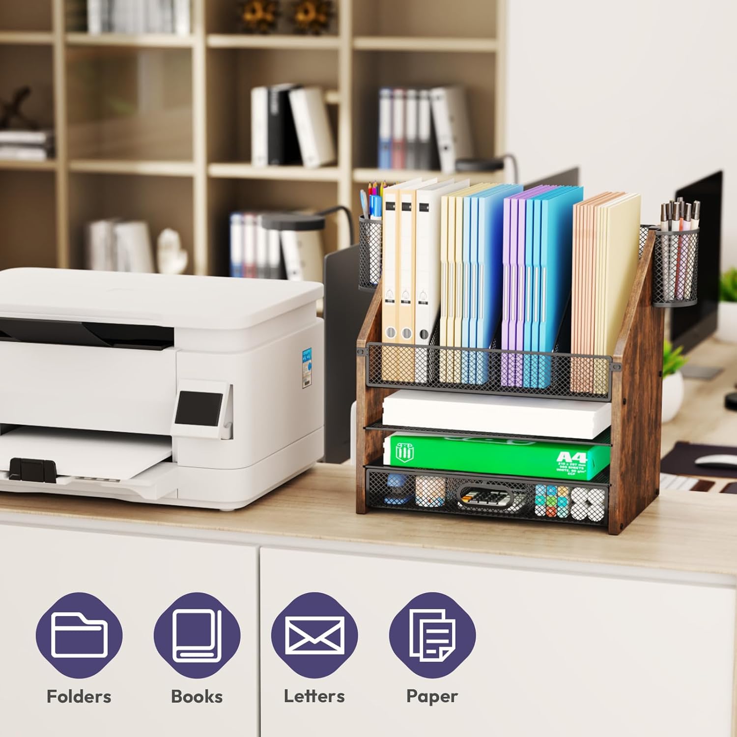 - [Multi-Layered Structure]: Smart vertical layout offers a unique solution for office organization, using layered compartments to separate files, papers, and tools. Whether used as desktop file organizer for work or school, or as a home desk with storage unit, it helps maintain a clear and efficient workspace
