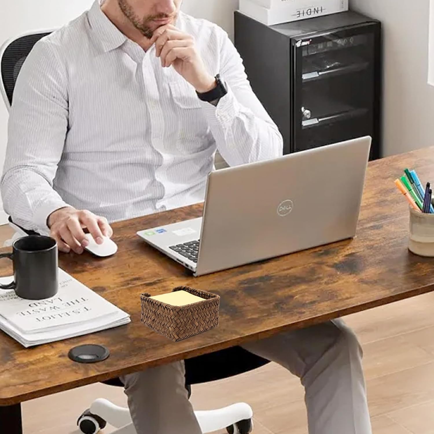 • No more digging through drawers looking for sticky notes! - If you feel messy and disorganized for your stationery, please try our wicker desk organizer to storage your desk supplies. It's also a great addition to home, office desk, the seagrass sticky note holder allows you to find paper fast when needing to capture ideas, exchange info, or write down deadlines. Perfect accessory for work desk.