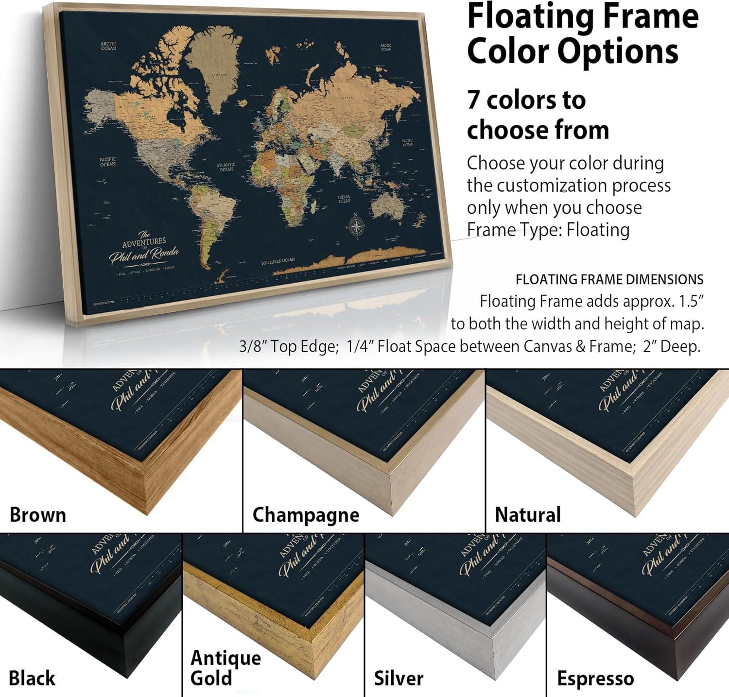 - PERSONALIZE YOUR MAP by using your favorite travel quote and/or adding your family's names. Or add your company logo! Makes a truly unique keepsake and great conversation piece when guests come to visit your home or office. Or give as a custom wedding, retirement or graduation gift.