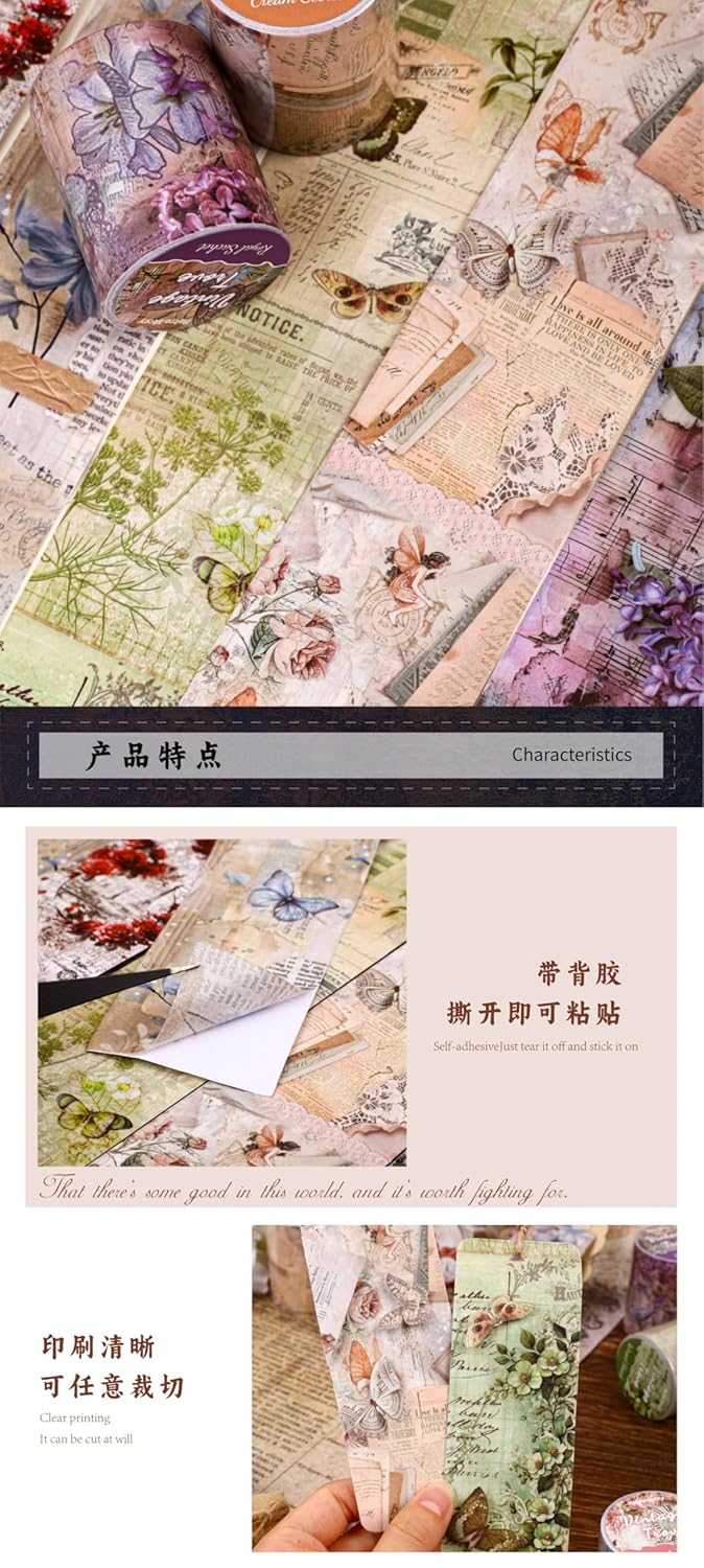 Alideco 6pcs Decorative Adhesive Tapes Vintage Plants Flowers Butterflies Washi Paper Tape Great for Bullet Journal Supplies, Arts, Scrapbook, DIY Crafts, Planners (fugumicang)
