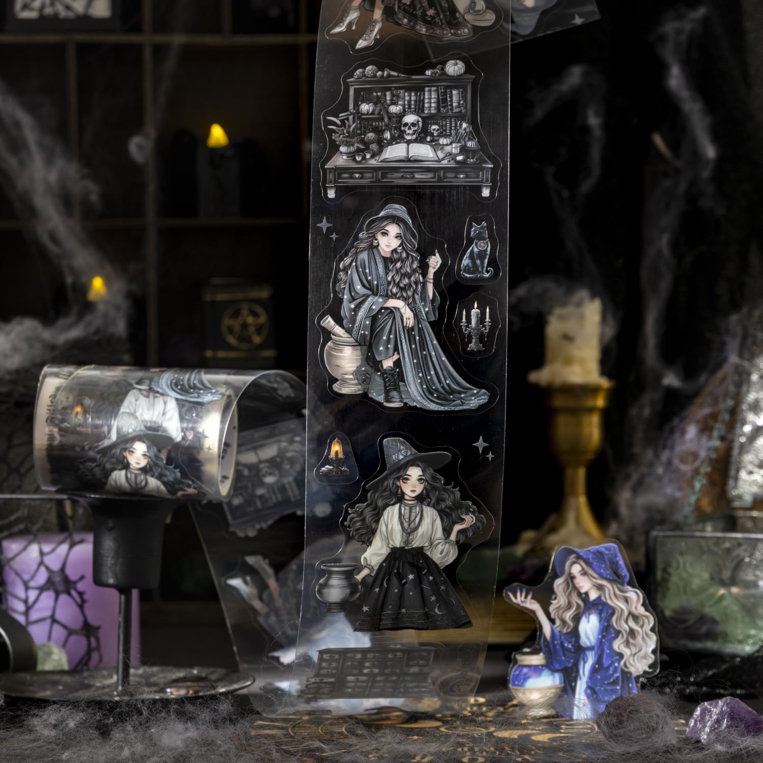 Alideco 6pcs Decorative Adhesive Tapes Vintage Magical Person PET Tape Great for Bullet Journal Supplies, Arts, Scrapbook, DIY Crafts, Planners (mofashiderichang)