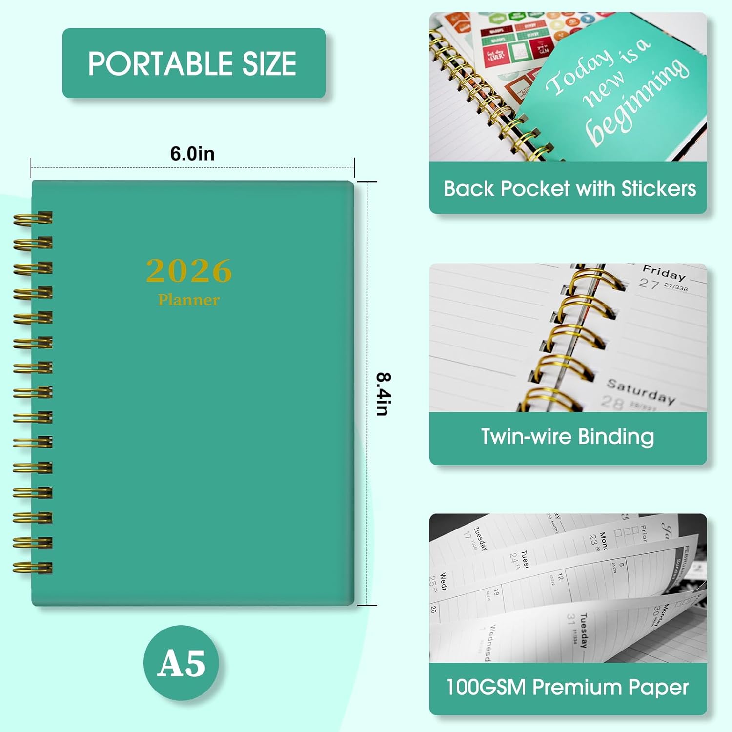 Ymumuda Academic Planner 2026, Daily Weekly and Monthly Calendar Planner (Jan. 2026-Dec. 2026),8.4"×6.3", Hardcover Notebook Teacher Supplies, Premium Thick Paper, Planners for School Work Office