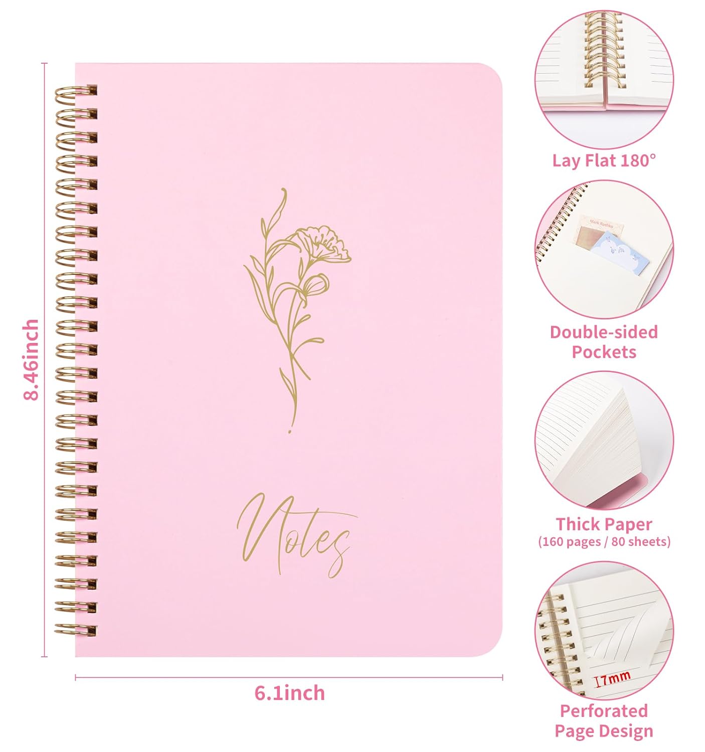 - 【High-Quality Writing Experience】Enjoy seamless and vibrant writing with our journaling set. Every Package has one A5 spiral notebook featuring 160 pages / 80 sheets of uniquely thicker 80gsm paper. Perforated page design makes it easy to tear out pages without disturbing the rest of the notebook. The double inner pocket can hold notes, receipts, business cards, etc.
