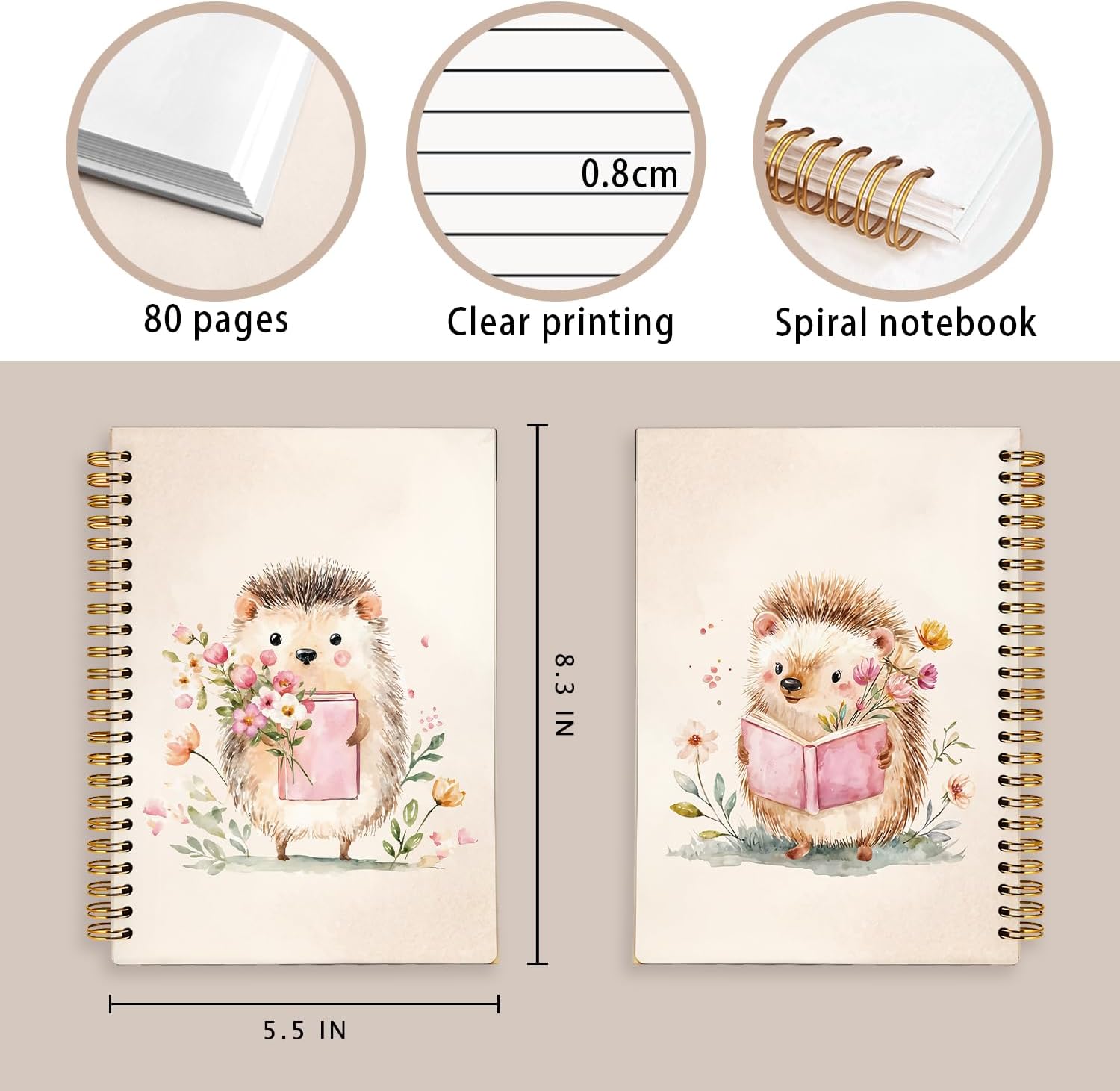 Cute Hedgehog Reading Notebook Journal for Kids, Hedgehog Gifts Notebooks for Women, Book Lovers Gifts Journal, Cute Animal Reading Books Hardcover Spiral Notebook 5.5x8.3 Inch
