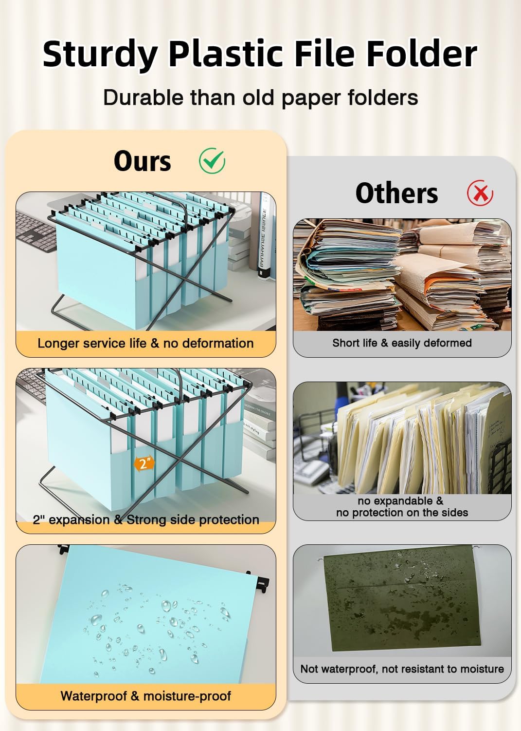 • [STAY ORGANIZED] Our hanging file folders letter size can organize different types of files for quick and easy identification to keep your documents tidy. Simple to use and effective for keeping paperwork organized in the cabinet