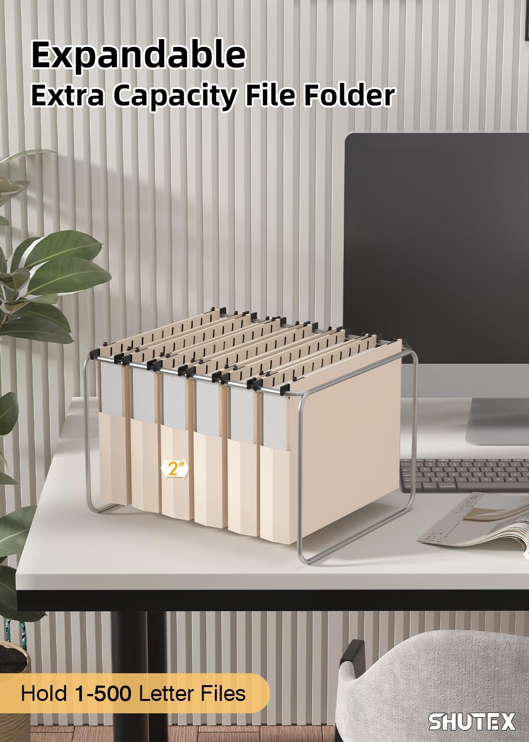 - [ACCORDIAN POCKET FILE FOLDERS] The SHUTEX plastic hanging file folders come with a 2" expansion strips of plastic board to place into the bottom of the folder to make the flat edge, which makes them able to hold up to 500 sheets of letter size paper. Accordian pocket design can prevent file drops