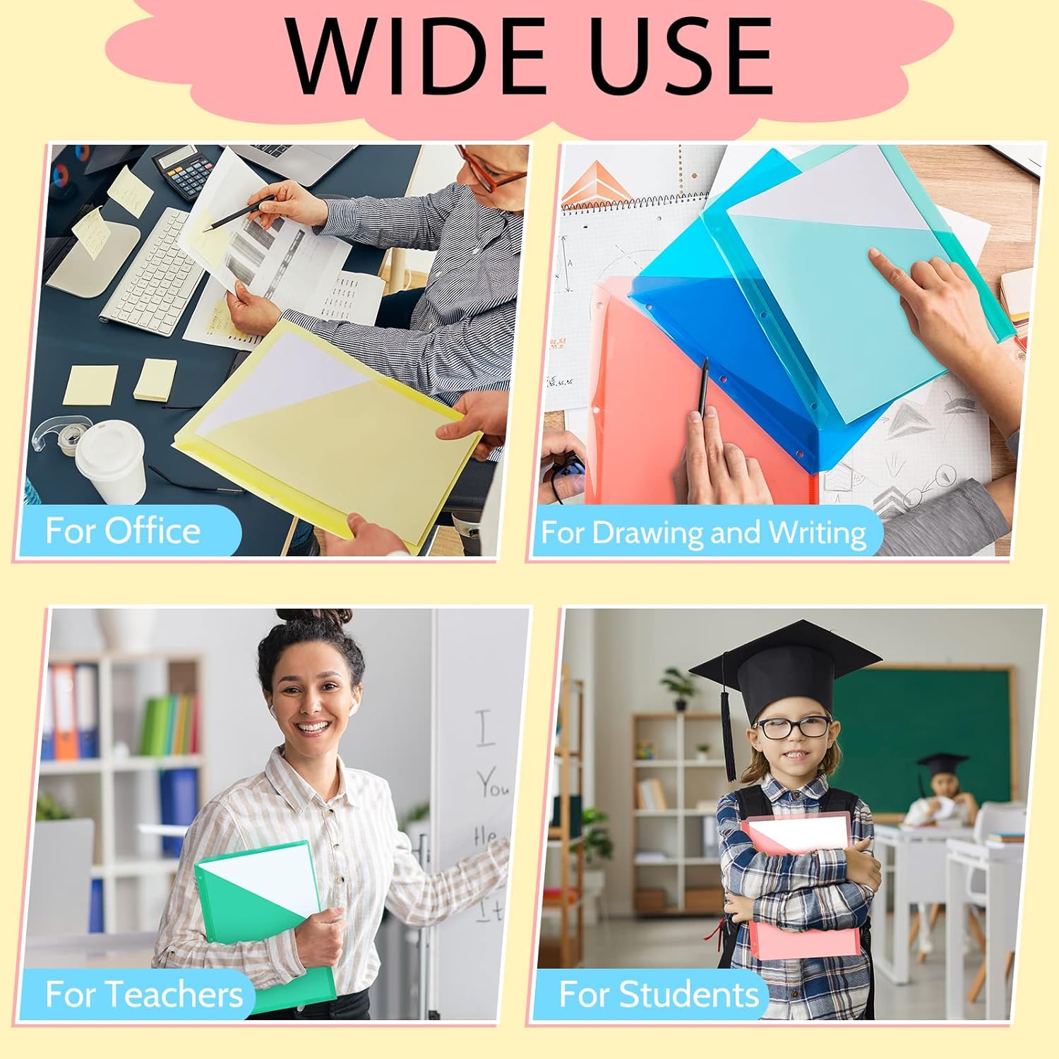 Maitys 30 Pack Binder Pockets 3 Hole Punch Clear Plastic Document Folders Binder Organizer Store Letter Size 8.5x11 Inch Paper Folders with Pockets Slash File Jacket for Office (Candy Color)