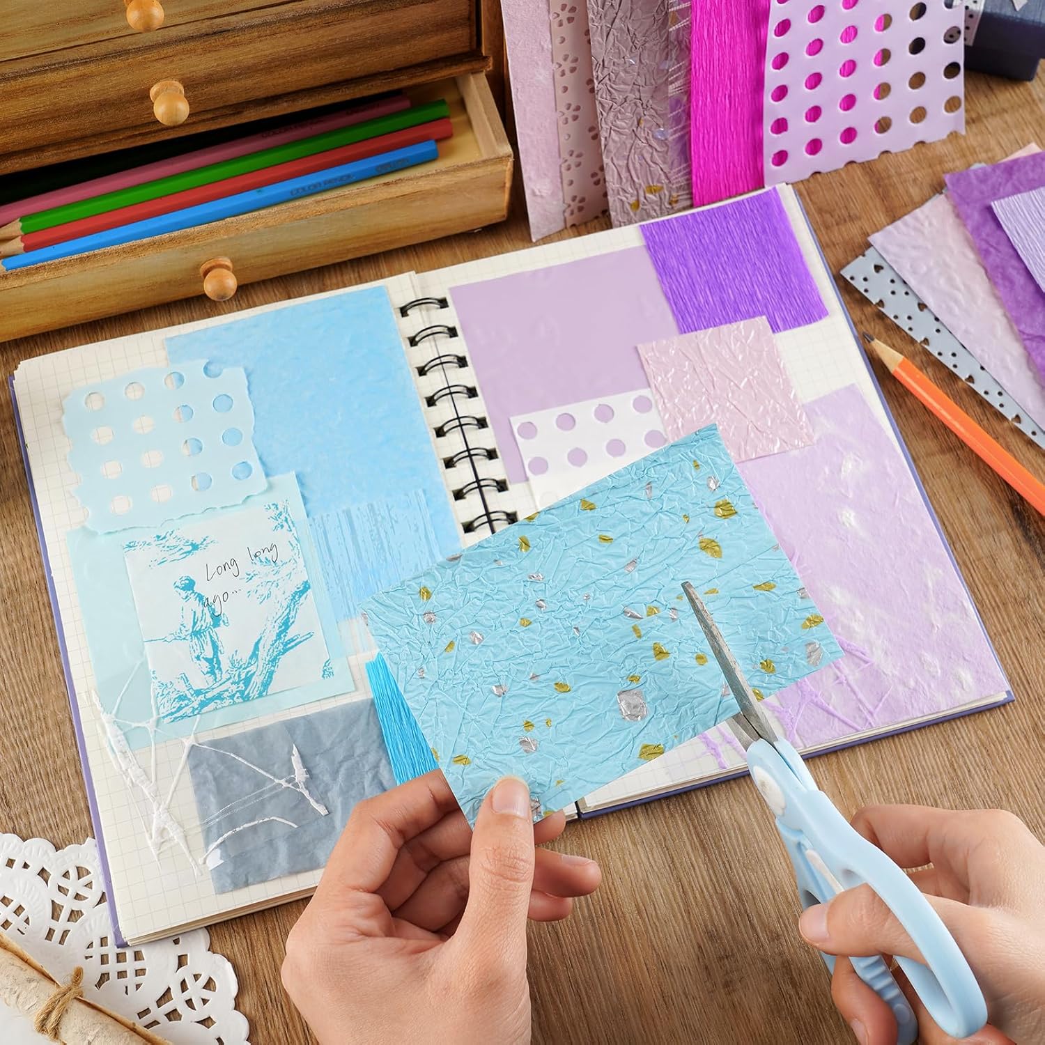 - ๐ธ 10 Colors & Textured Patterns: Each scrapbook paper set includes 10 unique color. And the scrapbooking papers themes high-quality textured paper or mesh sheetsโ160 total sheets to spark any creative project. Perfect for DIY, journaling, and scrapbooking.