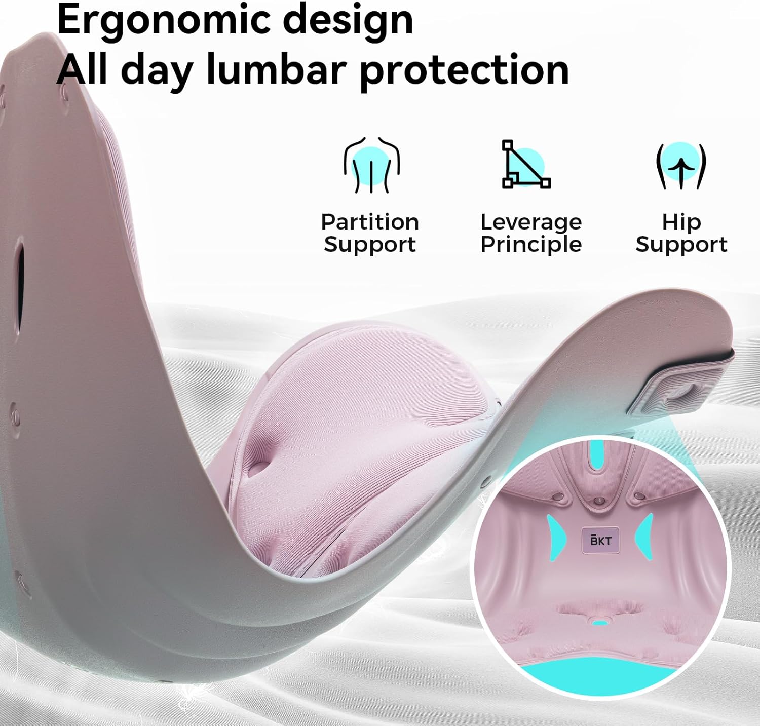 BKT Lumbar Support Seat Cushions Ergonomic Office Chair for Students Office Workers Nursing Mothers Long Sitting Outdoor Fishing Floor Chair (XL-Pastel Lilac)