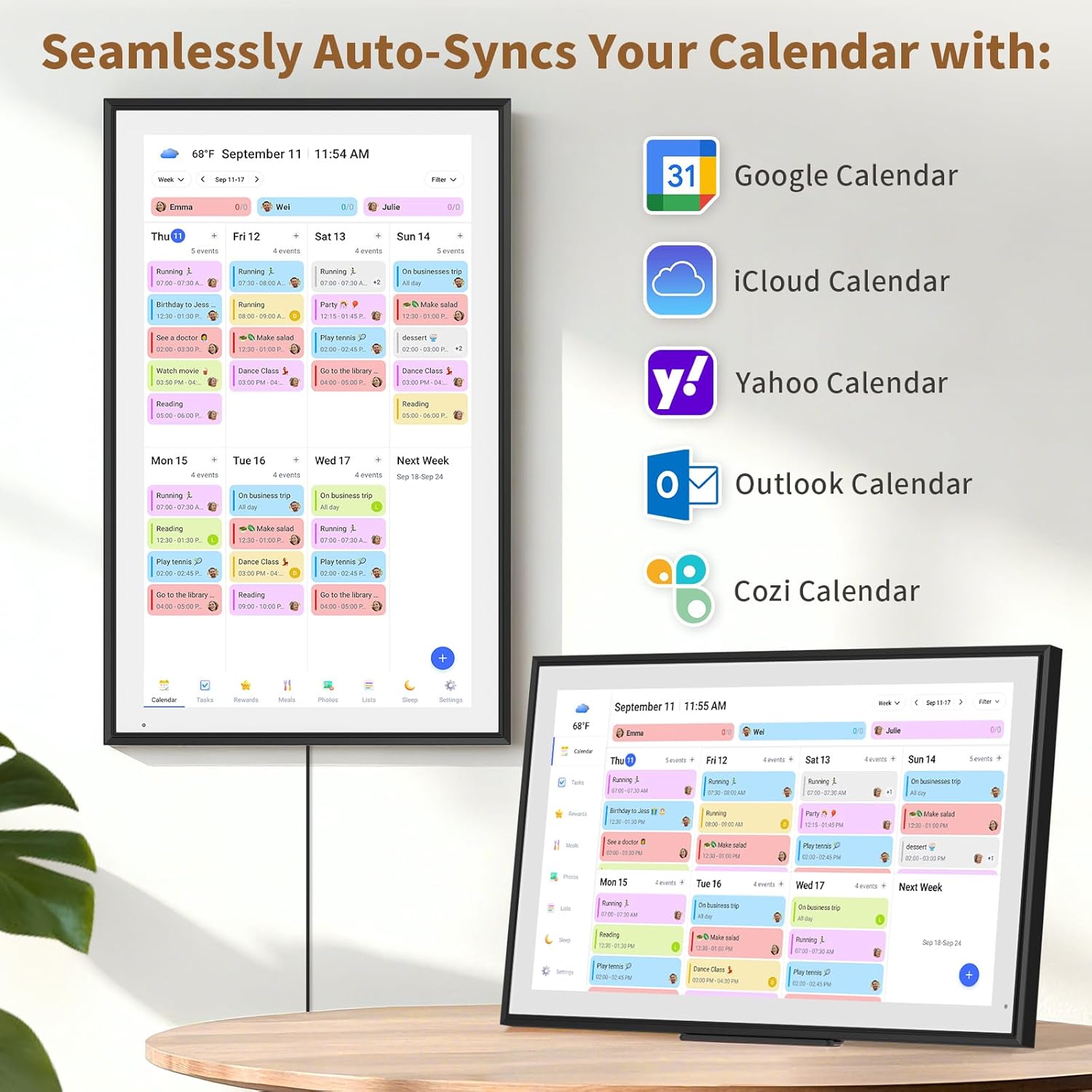 - ๐ Smart Wi-Fi Sync: Connect to Wi-Fi (2.4/5GHz) to instantly sync calendars with Google, iCloud, Outlook, Cozi, Yahoo, and more. Events automatically update, eliminating duplicates or missed events, ensuring your entire family's schedule is always consistent