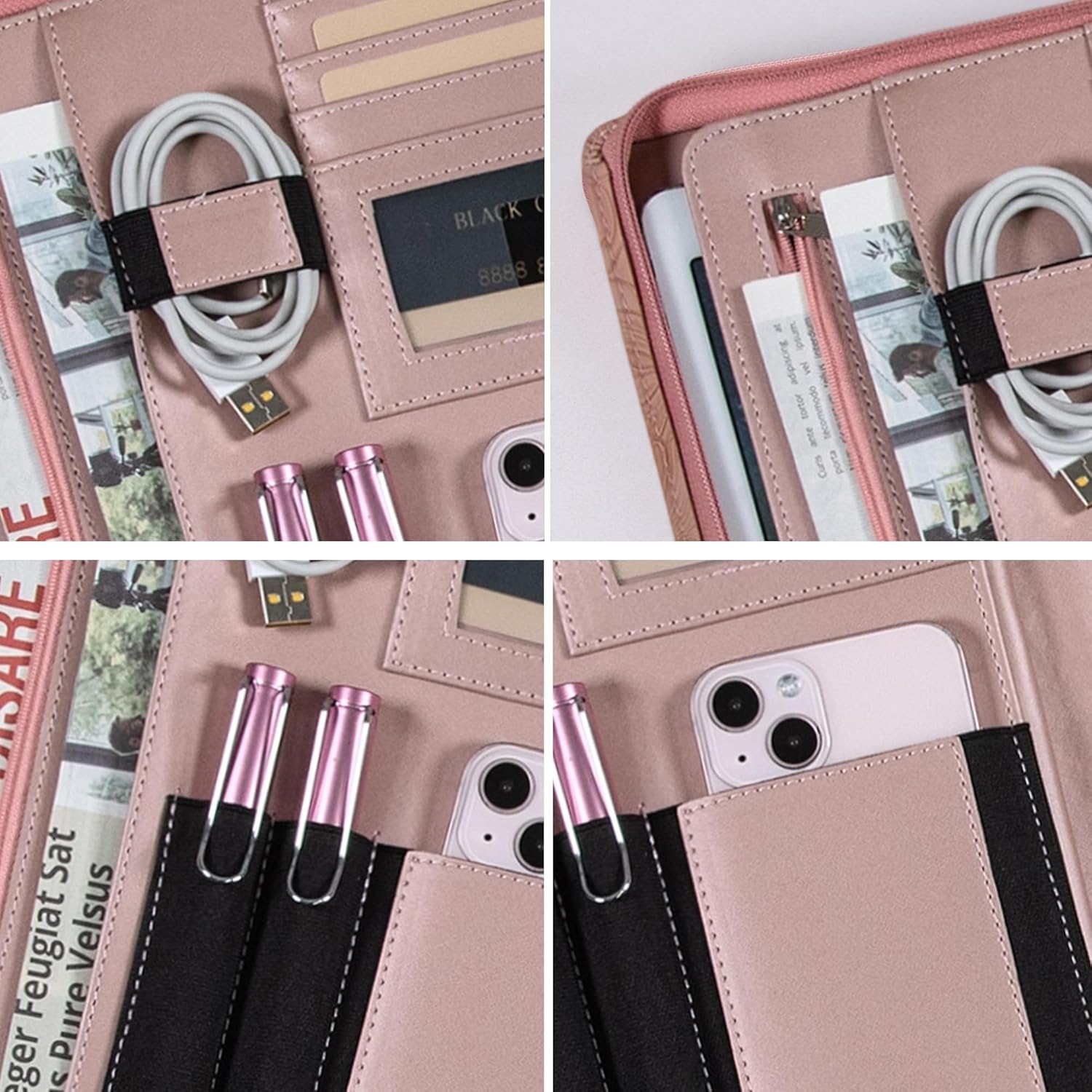Generic Zippered Leather Padfolio Portfolio with Hidden Handle and Clipboard, Business Conference Organizer Notepad Folder, Portfolio Bag, Padfolio for Women/Men (Pink)