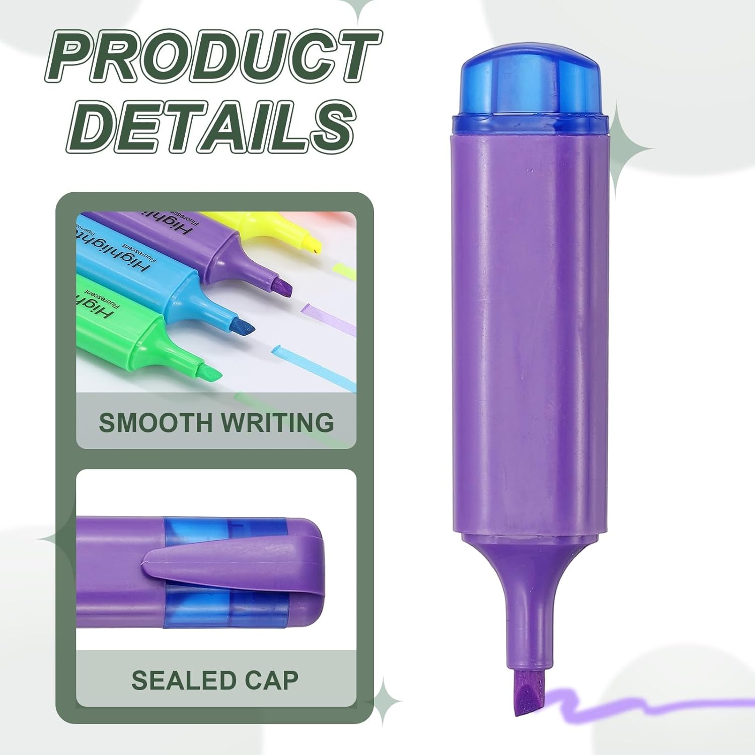 - Advantage: 1. Bright colors from these color highlighters stand out clearly, making it simple to mark your notes and helping you quickly spot key information. The wide head design allows it can mark a wider area at a time. 2. Designed to be compact and easy to hold, this broad tip highlighter is light enough to carry in a pocket or bag for writing anywhere. 3. This highlighter uses smoothly and delivers ink evenly. Even on thinner paper, they dry quickly to avoid hands or pages getting dirty.