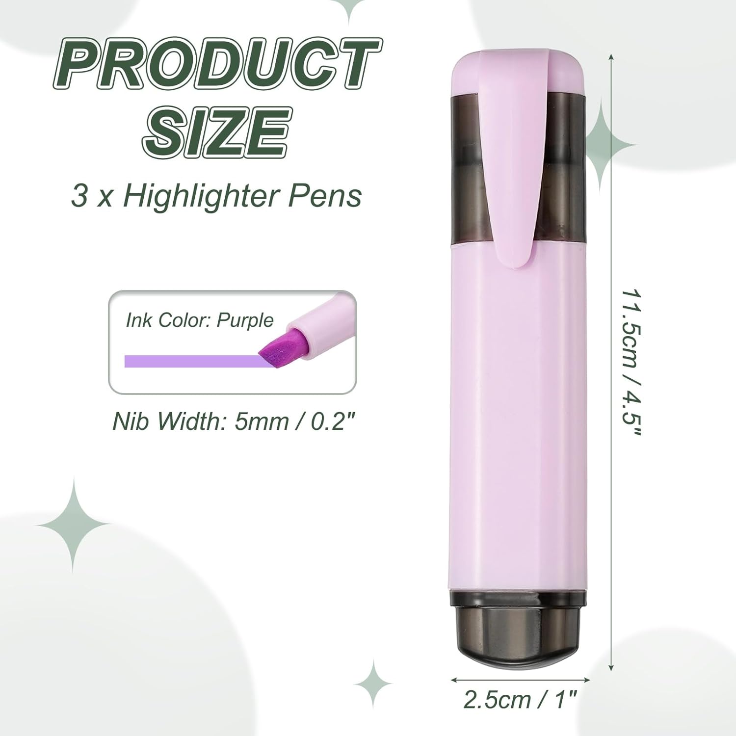 - Specification: Color: Purple; Nib Width: 5 mm / 0.2 inch; Point Type: Broad; Size: inch (L*W); Packing List: 3 x Highlighter Pens