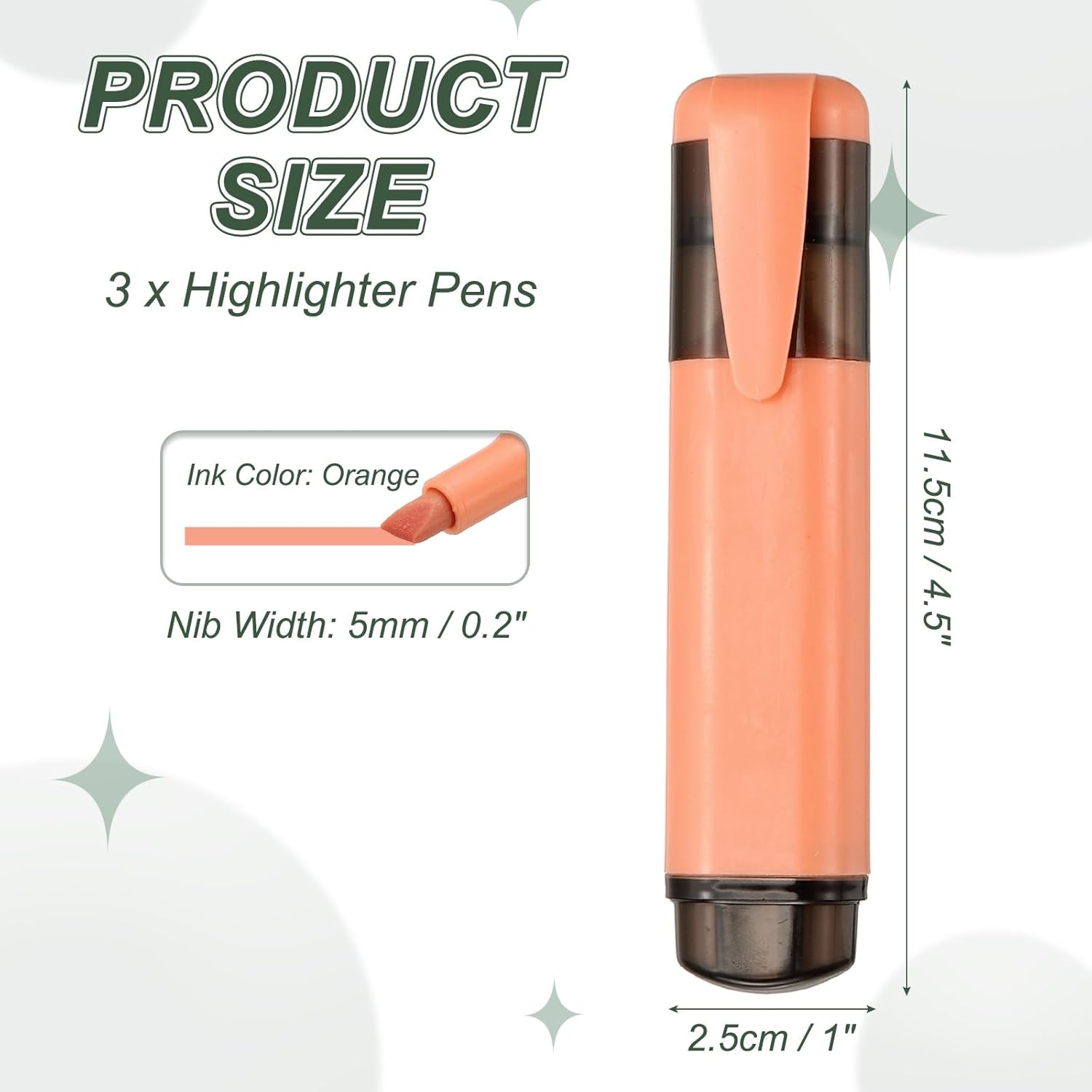 - Specification: Color: Orange; Nib Width: 5 mm / 0.2 inch; Point Type: Broad; Size: inch (L*W); Packing List: 3 x Highlighter Pens