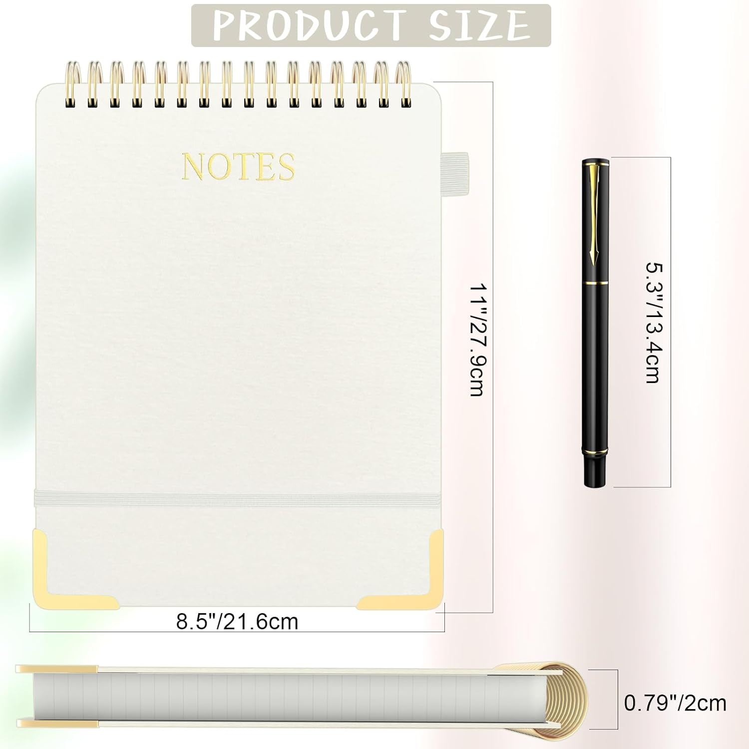 - 【WITH PEN & PEN HOLDER】This top spiral notepad comes with a sleek metal pen, a pen loop, and a built-in back pocket for storing postcards, notes, etc. The double-wire binding also securely holds additional pens, offering convenience for on-the-go use. The included sticky divider tabs help you organize and categorize your notes effortlessly, ensuring easy access and organization of your notes by topic, project, or date.