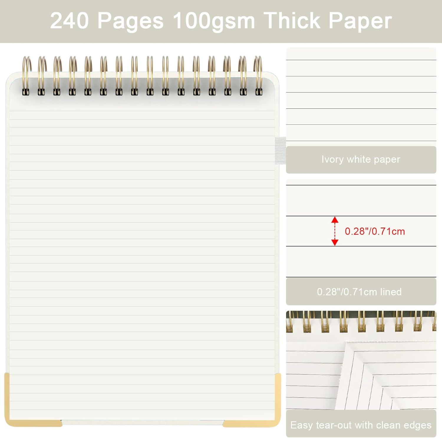 - 【COLLEGE RULED PAGES】This meeting notebook for work has 240 Pages (120 Sheets) with 100 gsm lined paper, which is thick and prevents ink bleeding effectively, allowing you to enjoy a smooth writing experience. Ivory white college ruled paper with 0.71 cm line spacing is perforated for easy tear-out with clean edges, a great top bound spiral notebook for students, professionals, and creatives.