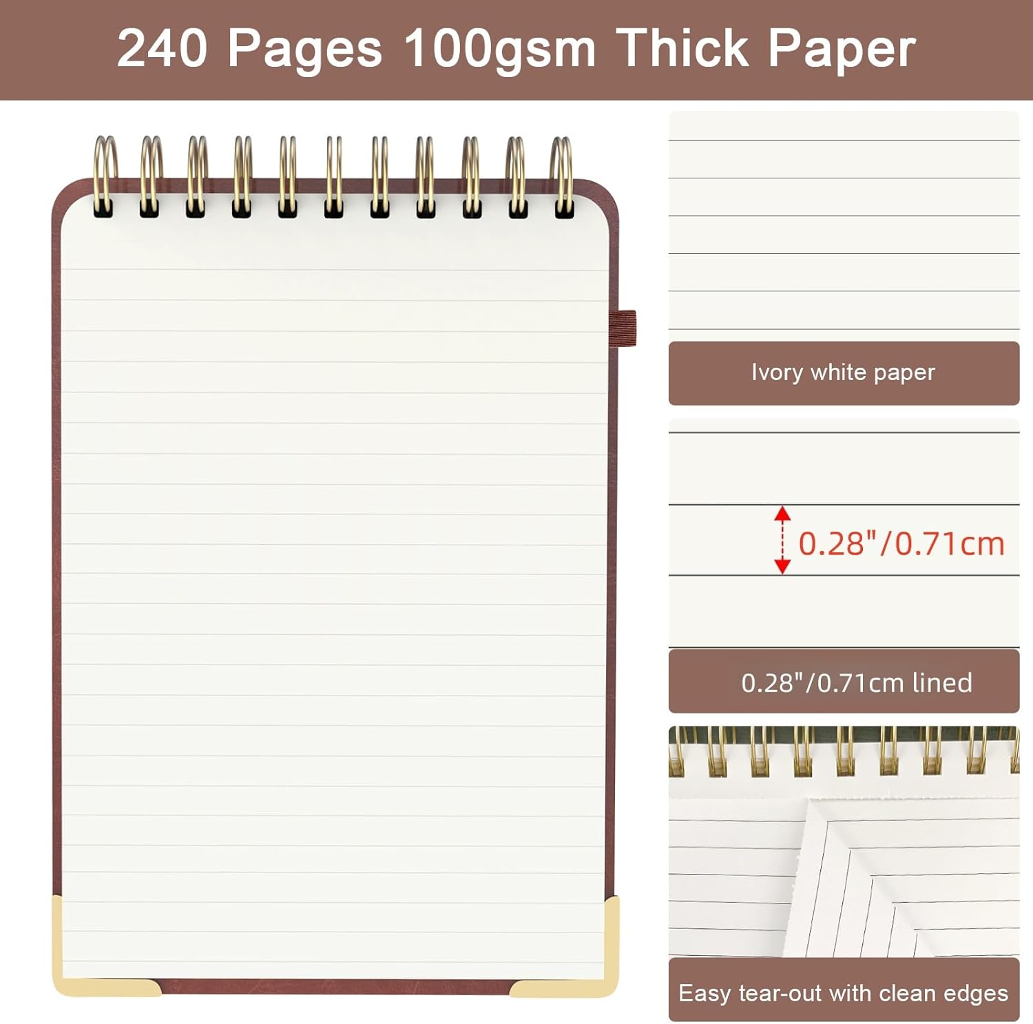 - 【COLLEGE RULED PAGES】This meeting notebook for work has 240 Pages (120 Sheets) with 100 gsm lined paper, which is thick and prevents ink bleeding effectively, allowing you to enjoy a smooth writing experience. Ivory white college ruled paper with 0.71 cm line spacing is perforated for easy tear-out with clean edges, a great top bound spiral notebook for students, professionals, and creatives.