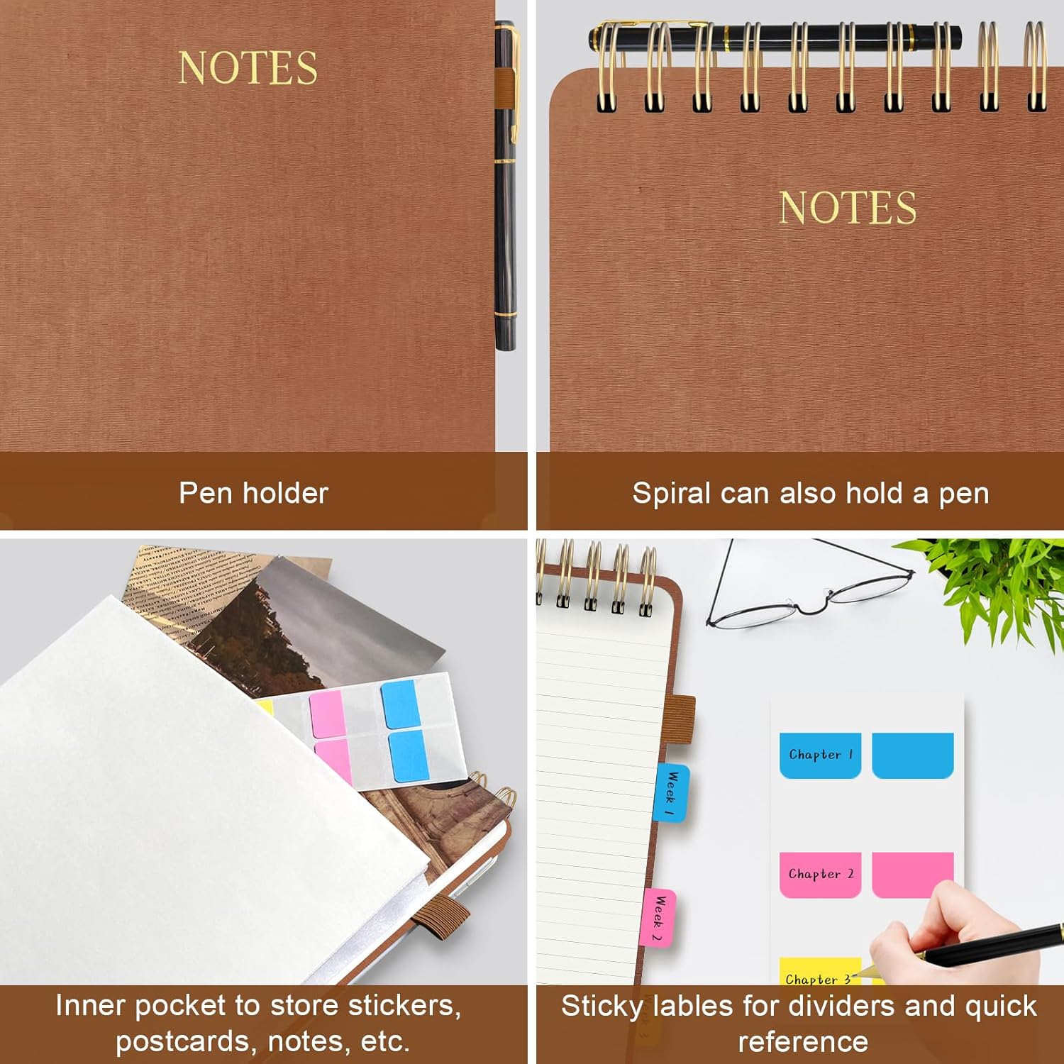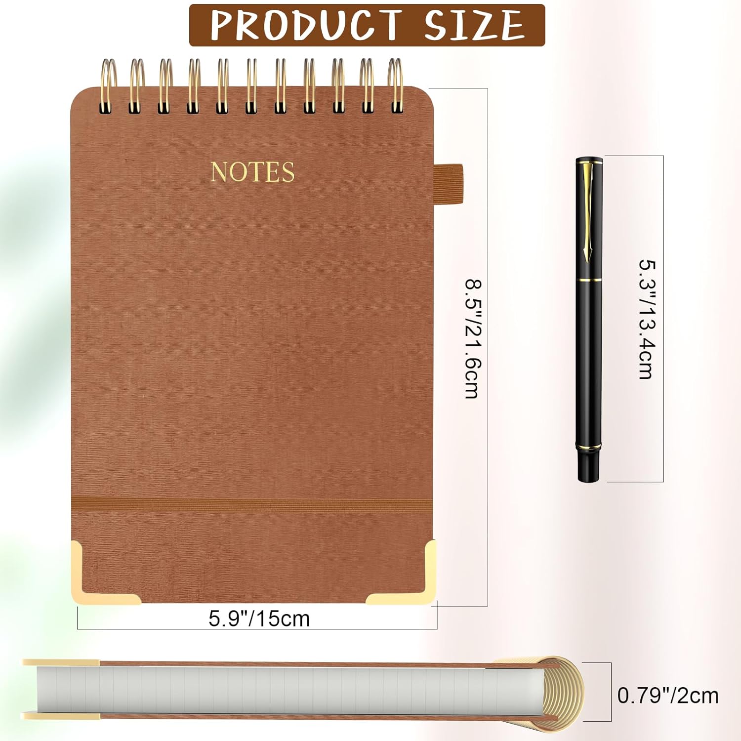 - 【WITH PEN & PEN HOLDER】This top spiral notepad comes with a sleek metal pen, a pen loop, and a built-in back pocket for storing postcards, notes, etc. The double-wire binding also securely holds additional pens, offering convenience for on-the-go use. The included sticky divider tabs help you organize and categorize your notes effortlessly, ensuring easy access and organization of your notes by topic, project, or date.