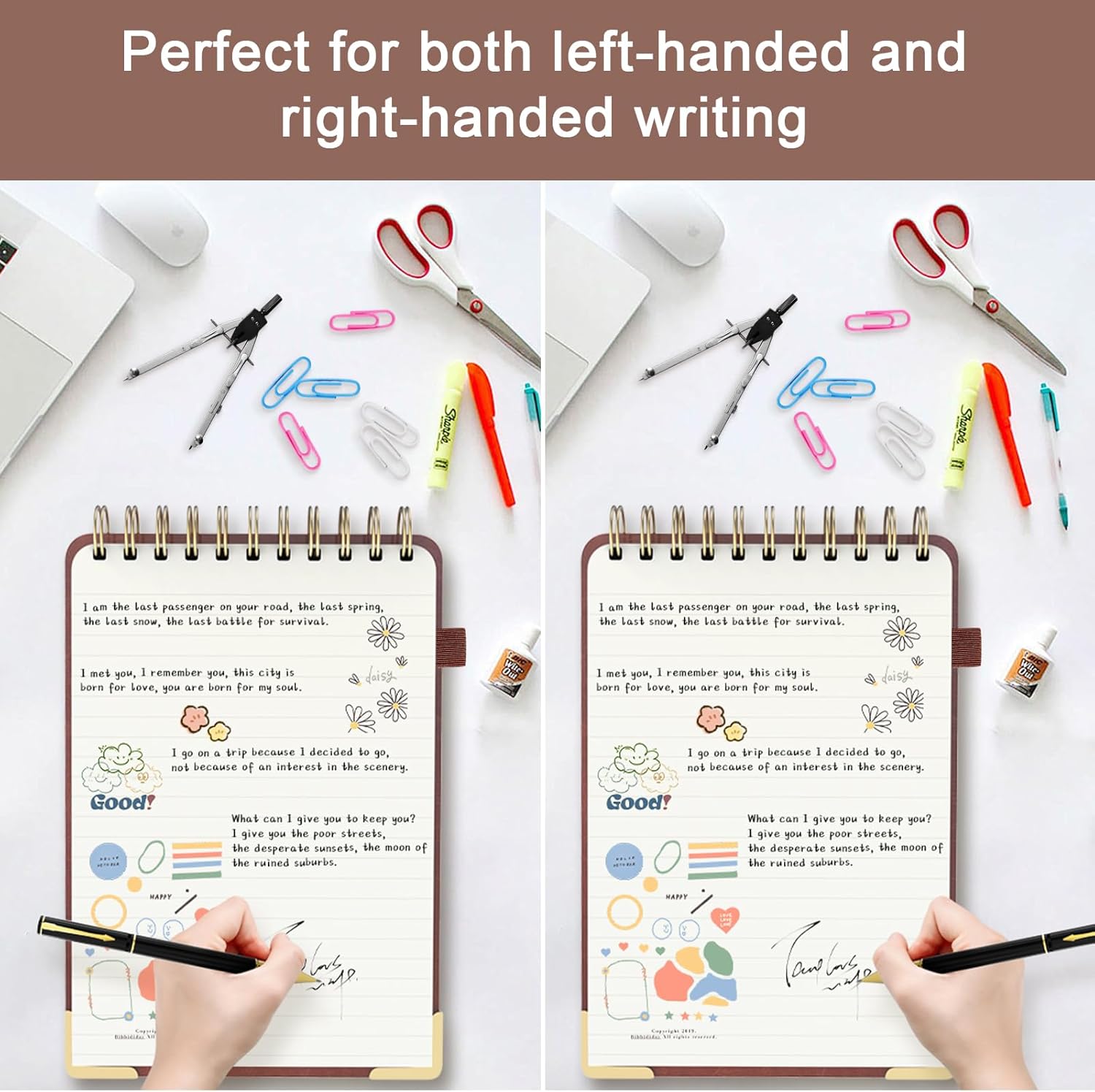 - 【A5 TOP SPIRAL NOTEBOOK】This 5.9 x 8.5-inch top notebook features a double-wire binding for 360° page rotation and 180° lay-flat use, making it ideal for both right and left-handed users. Perfect for writing, sketching, note taking, journaling or to do lists, its sturdy design ensures versatility and durability for school, work, church notes and more.